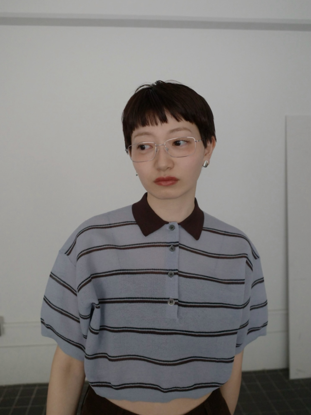 TOPS:SPONGY SHEER POLO KNIT TOPS ¥16,000+tax /BLUE/サイズ①