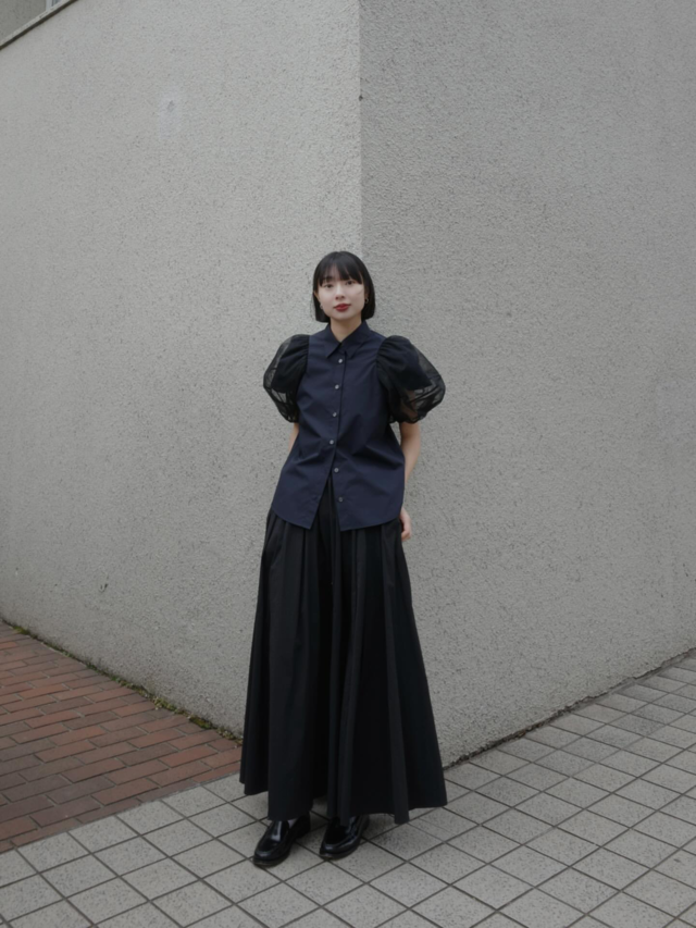 TOPS:TULLE LAYERED SLEEVE SHIRTS ¥20,000+tax /NAVY/サイズ①