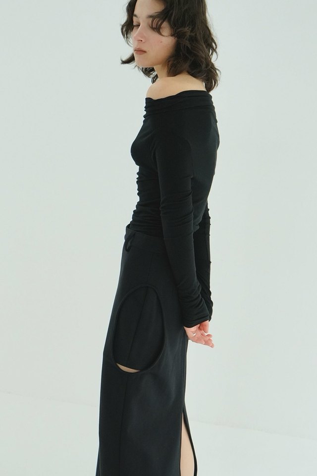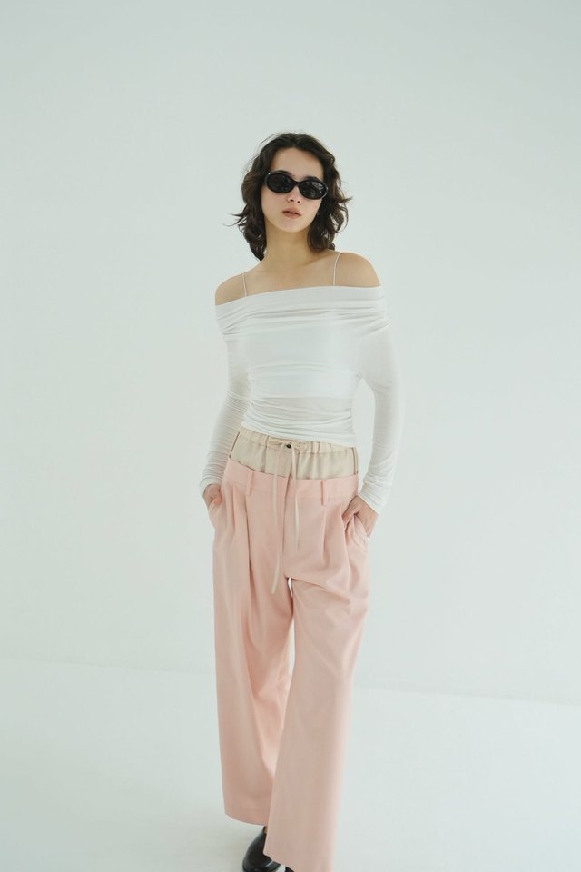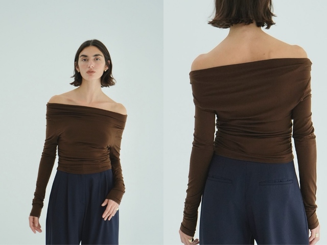DRAPED OFF SHOULDER SOFT CUT TOPS ¥18,000+tax