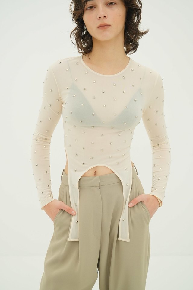 STUDDED BIJOU SHEER TOPS ¥24,000+tax