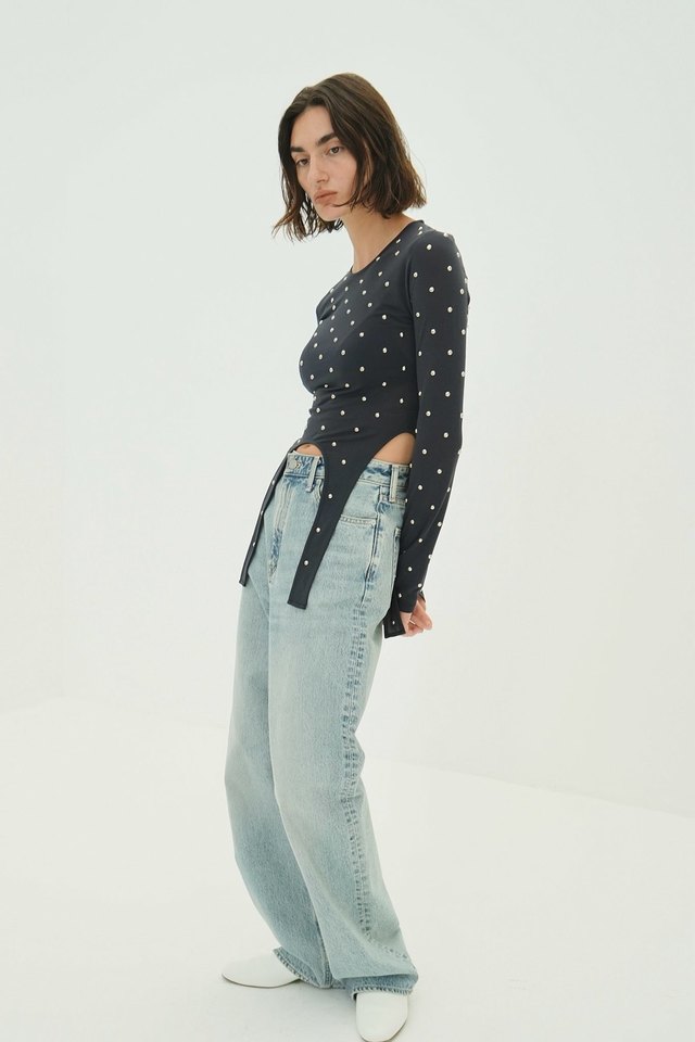 2月17日(火)発売の新作は、程よい肌見せが楽しめるオフショルダーカットソーを中心に、ボリュームパフがポイントのワンピース、スタッズデザインがアクセントのシアーボディスーツ、サークルカットのスウェットスカートなど、肌見せのバランスや、動きのあるシルエットにこだわったアイテムが揃いました。春に向けて、重たい印象から少し解放されたい今の気分にぴったりなラインナップなので、ぜひご覧ください。