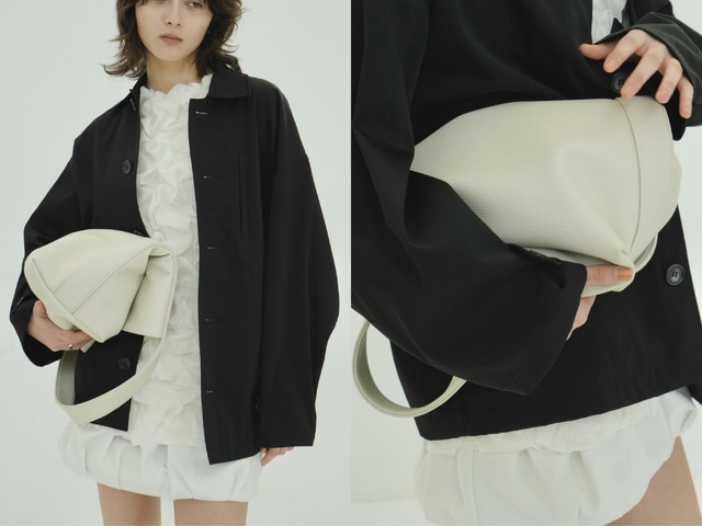 上品な見た目ながらも扱いやすく、気兼ねなく取り入れられる素材感が魅力です。バスケット型のフォルムと太めのハンドルが、シンプルな中にモードな印象をプラスします。折りたたんでクラッチのように持つなど、スタイリングに合わせたアレンジも楽しめるのがポイント。