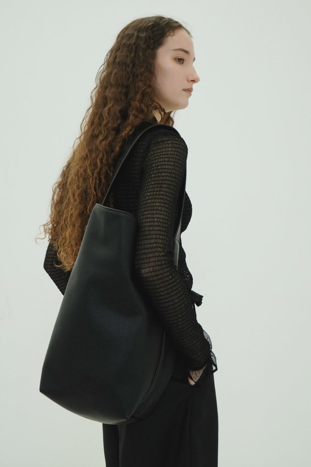 シボ感のあるフェイクレザーを使用した、存在感のあるラージトートバッグ。