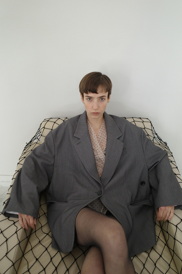 袖裏には滑らかな裏地を使用し、着脱しやすさにも配慮。袖口はコットンの裏地がちらりと覗く切り替え仕様で、折り返して着こなすのがおすすめです。オーバーサイズならではの肩の落ち感や袖のふんわりとしたボリュームも、スタイリングにこなれ感を与えてくれます。
