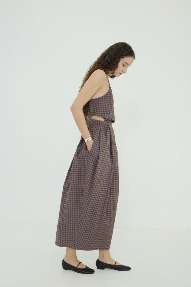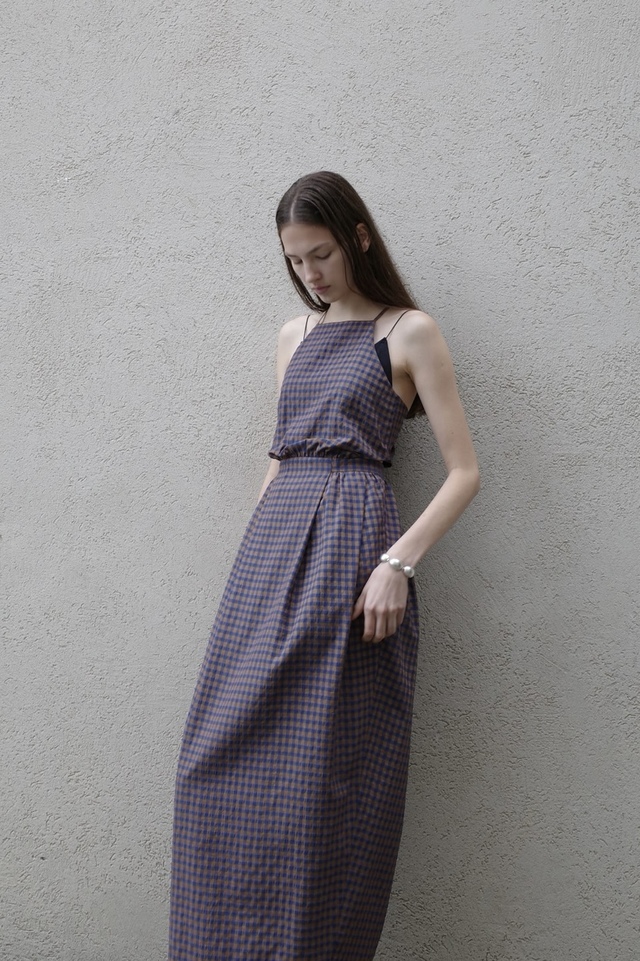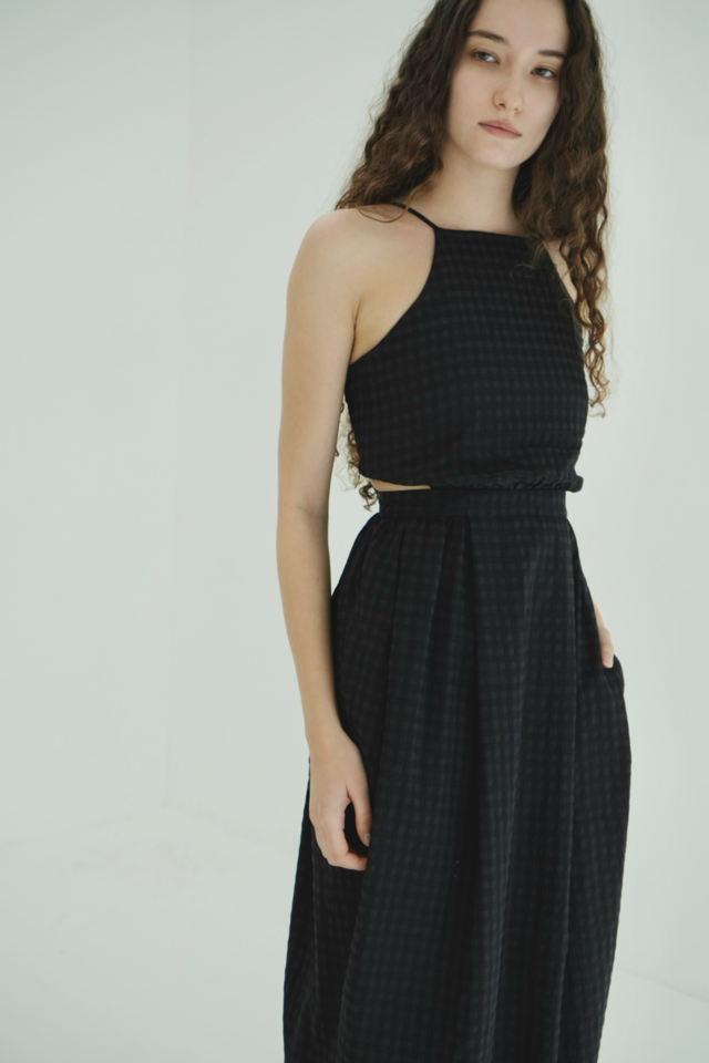 トップスと同じ素材を使用したチェックシリーズの軽やかなキャミワンピース。