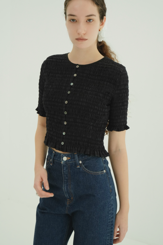 SHIRRING HALF SLEEVE BLOUSE ¥20,000+tax
