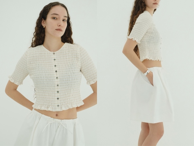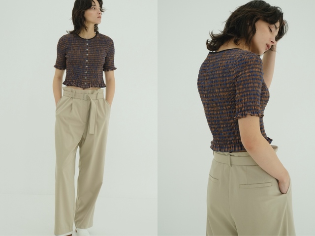 チェックシリーズはコンパクトに着られるシャーリングデザインのブラウスと、涼しげなキャミソールワンピースの2型。その他にも表情のある編み地が印象的なクロシェニットやウエスト位置を調整できるストレートスカートなど、涼しげな素材感と女性らしいディティールが魅力のアイテムがラインナップ。ぜひご覧ください。