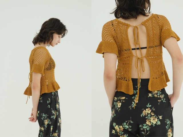 W FACE RIBBON CROCHET KNIT TOPS ¥22,000+tax