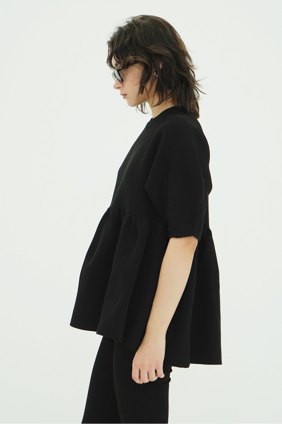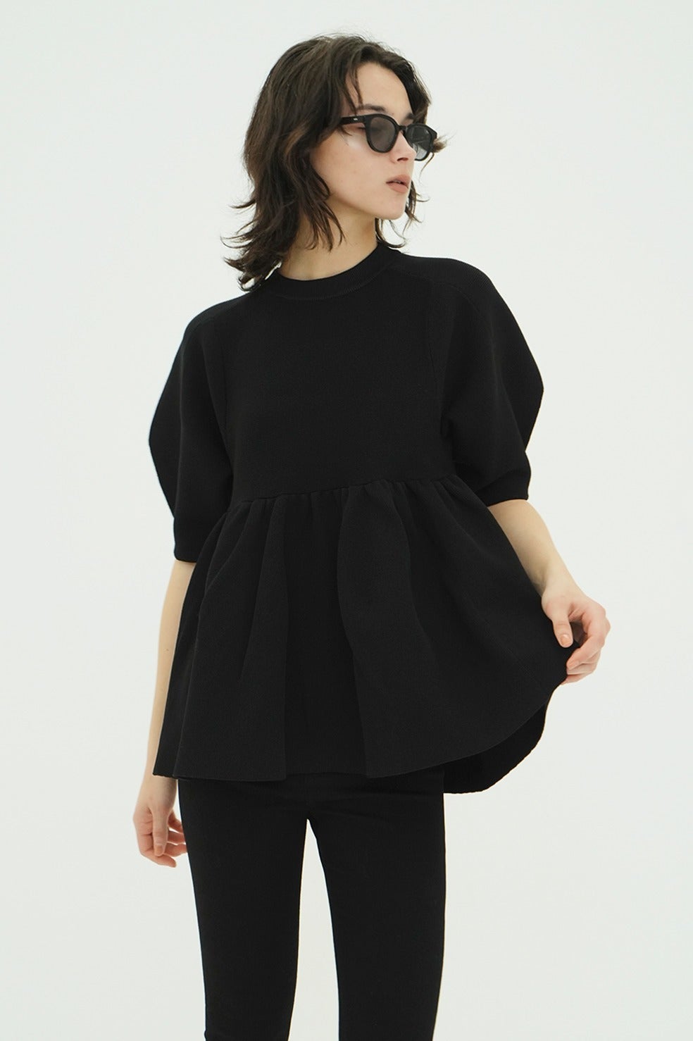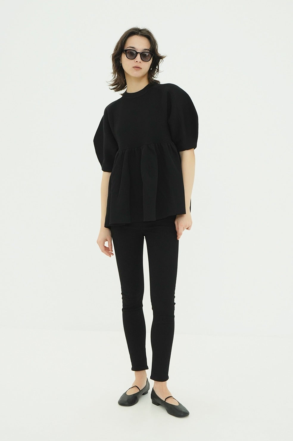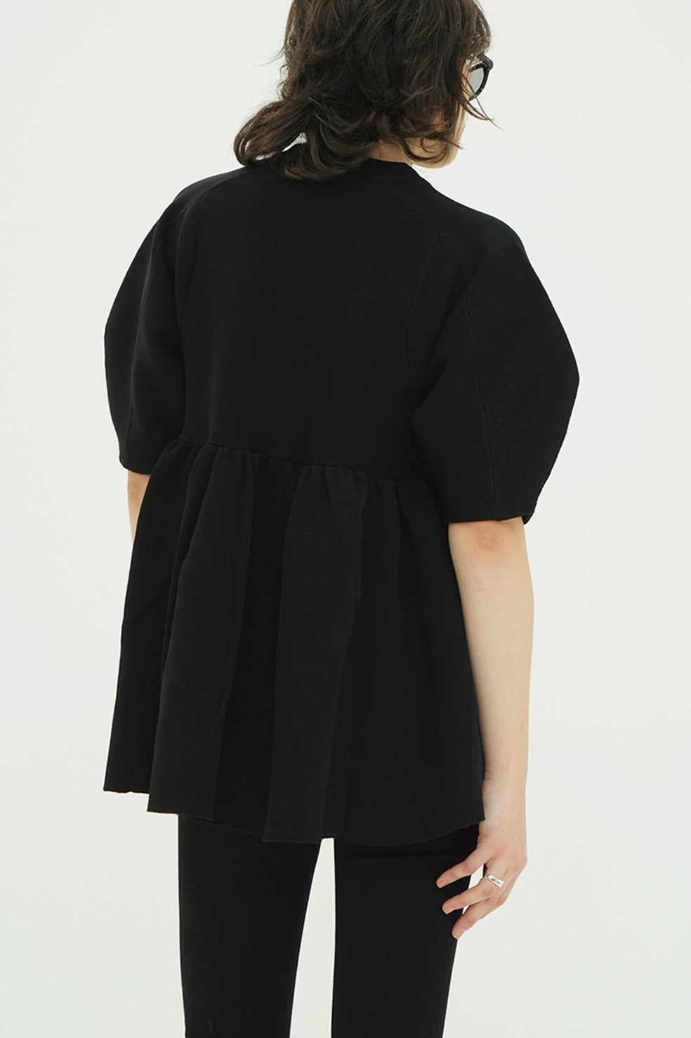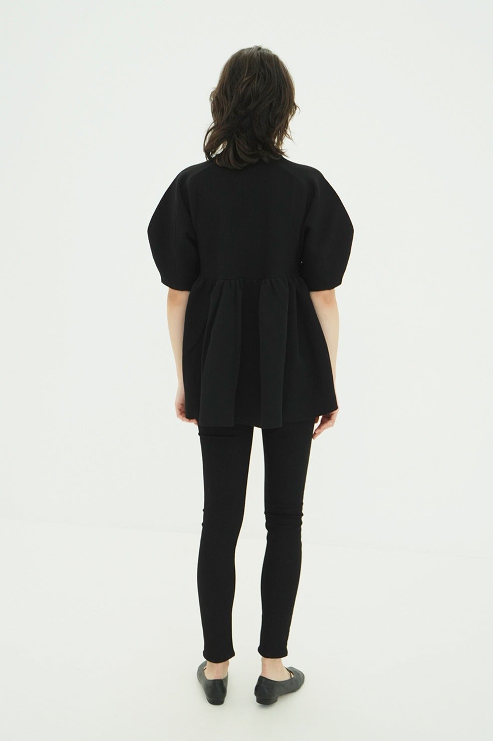 丸みのあるフォルムと立体感のあるペプラムディテールがスタイリングに存在感を添え、着るだけで雰囲気のある着こなしが完成します。