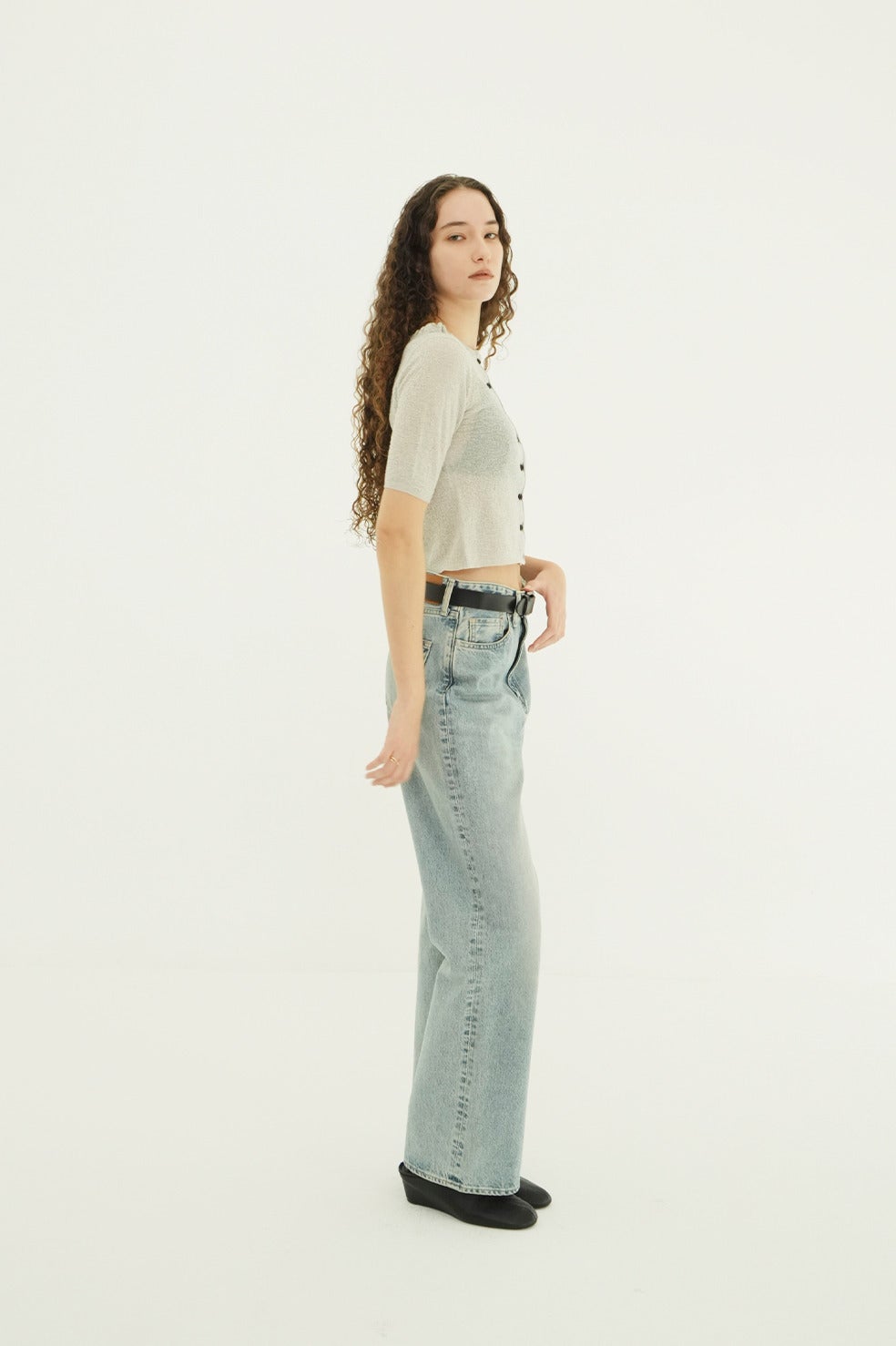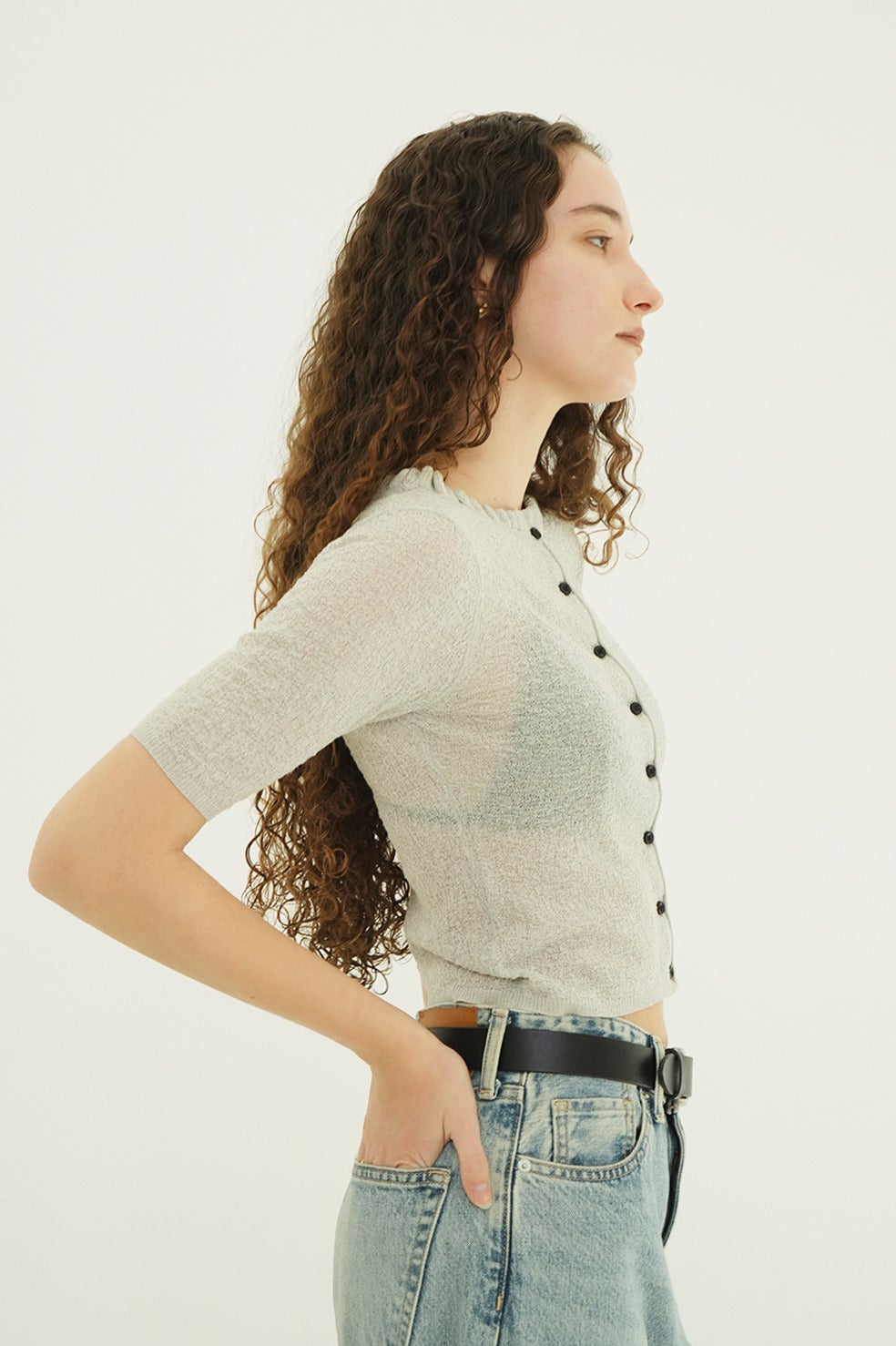 糸の形状を活かした編み地にこだわり、程よいシアー感と奥行きのある表面感が魅力の一枚。