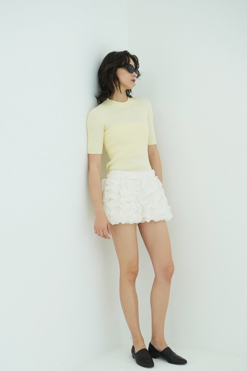 毎シーズンご好評いただいている、ハイネックの半袖リブニットトップス。