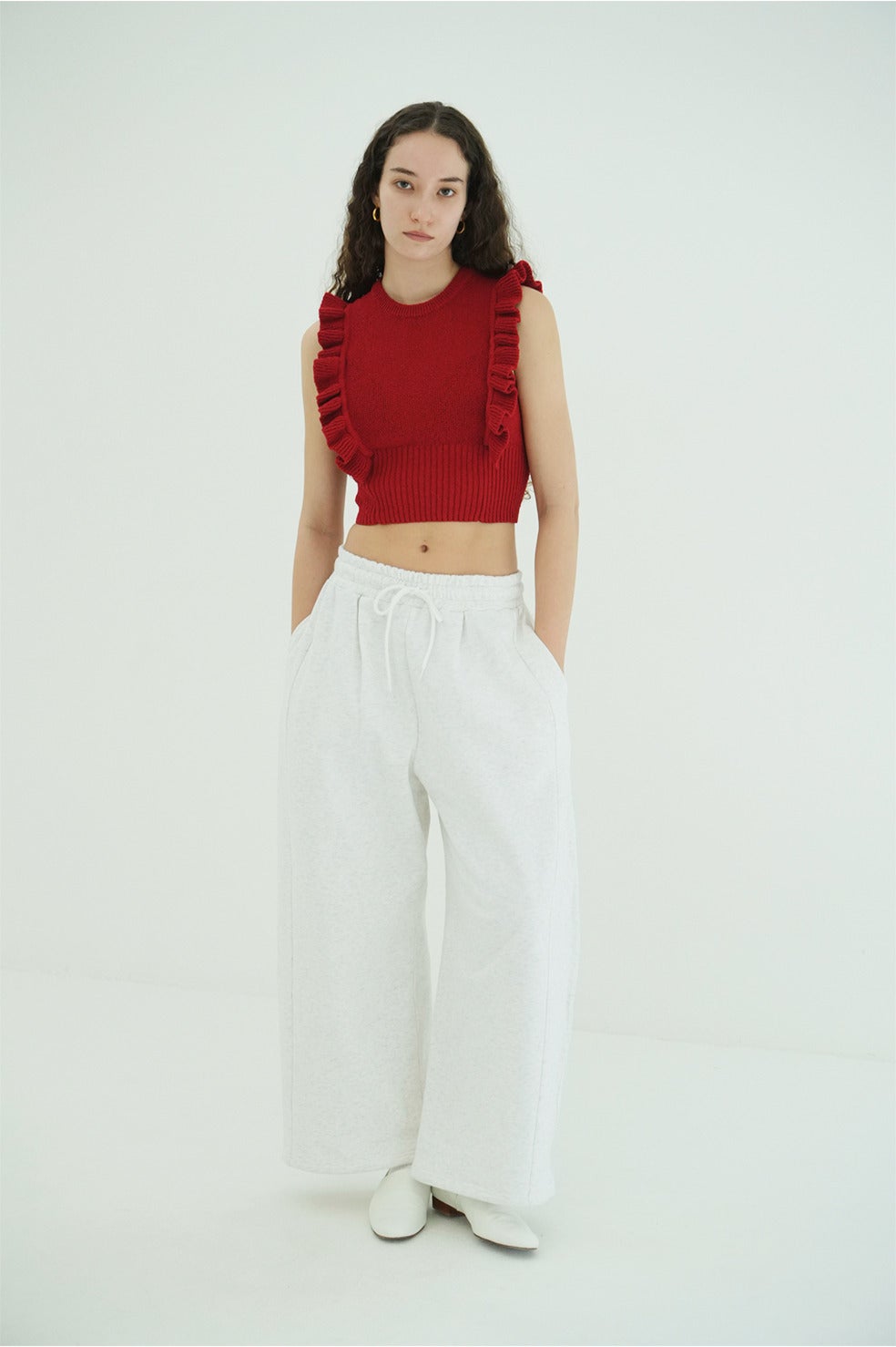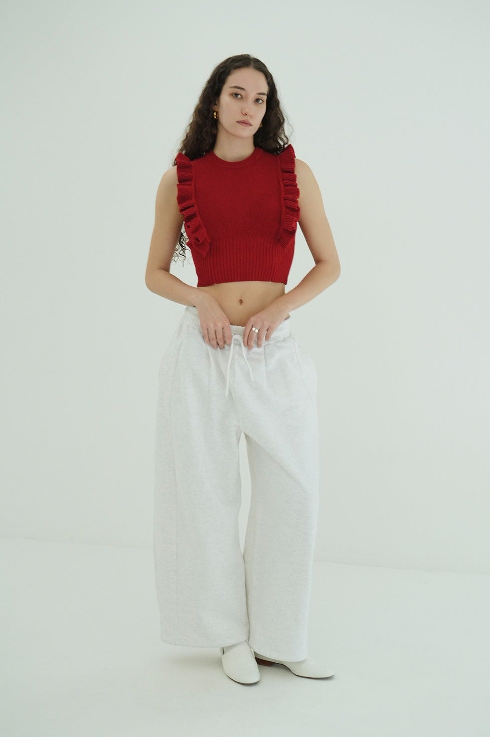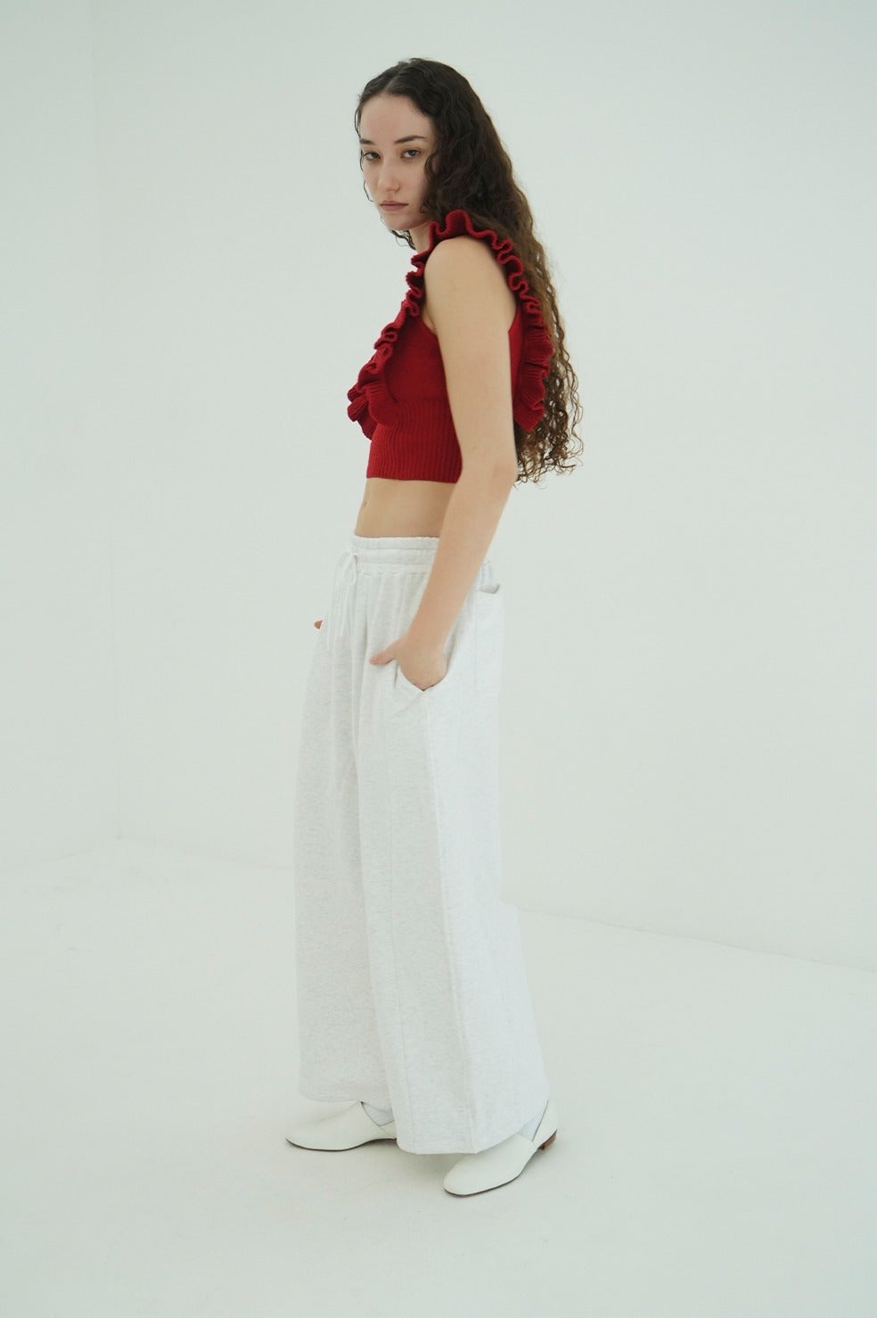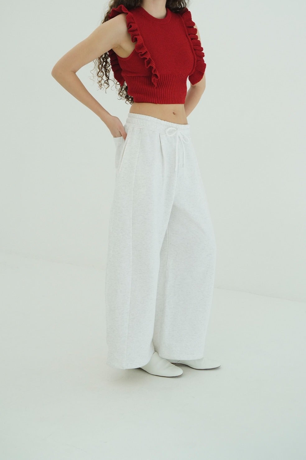 裾にはドローストリングを施し、シルエットの調整が可能で、カジュアルからモダンまで幅広いスタイリングに対応する一本です。
