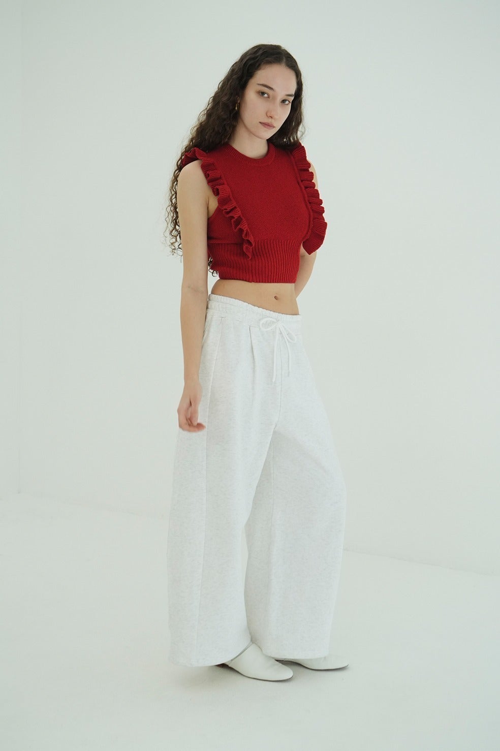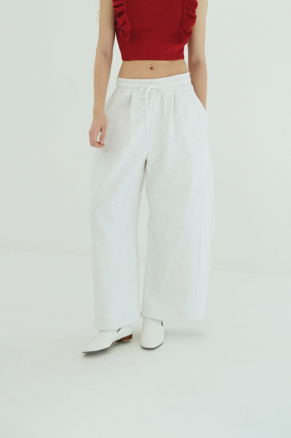 バルキーで立体的なコクーンシルエットが特徴のスウェットパンツ。