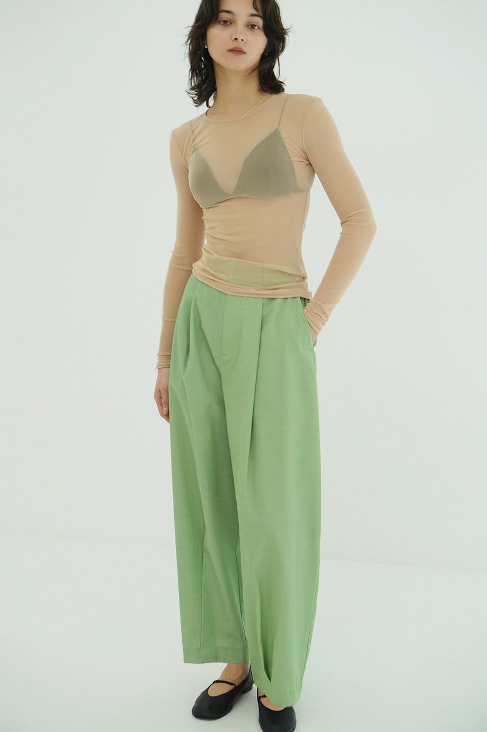 同じシリーズのWOOL NYLON SINGLE JACKET、WOOL NYLON TUCK DRAPE CAMISOLEと合わせたスタイルもおすすめです。