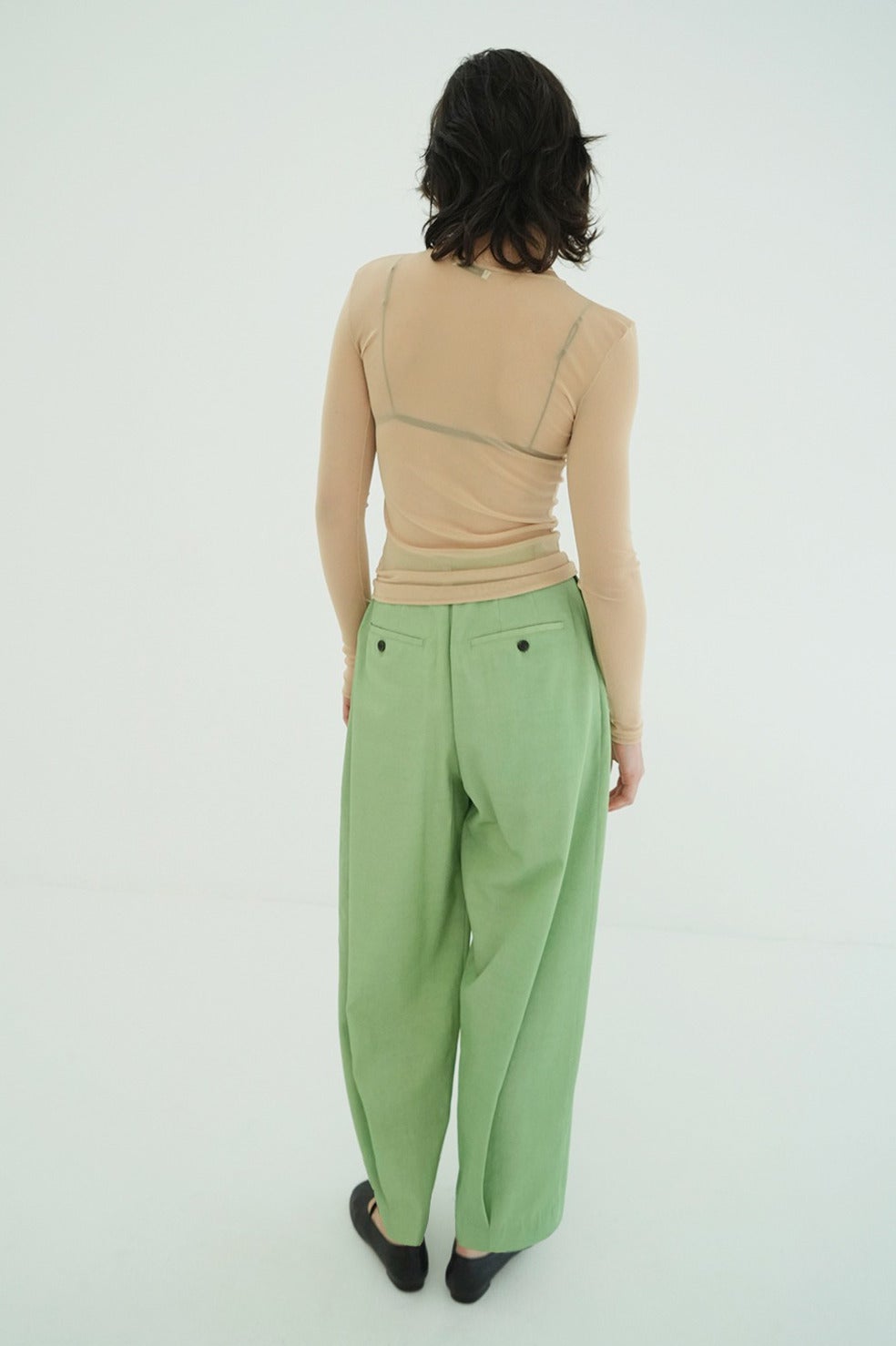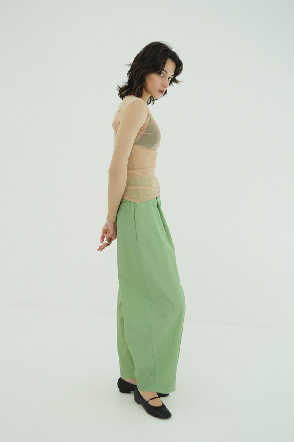 緩やかなカーブラインのバレルシルエットにこだわり、抜け感のあるシルエットに仕上げました。素材が持つ艶感が、シルエットをより美しく際立たせ、品のあるエフォートレスなスタイルをつくります。