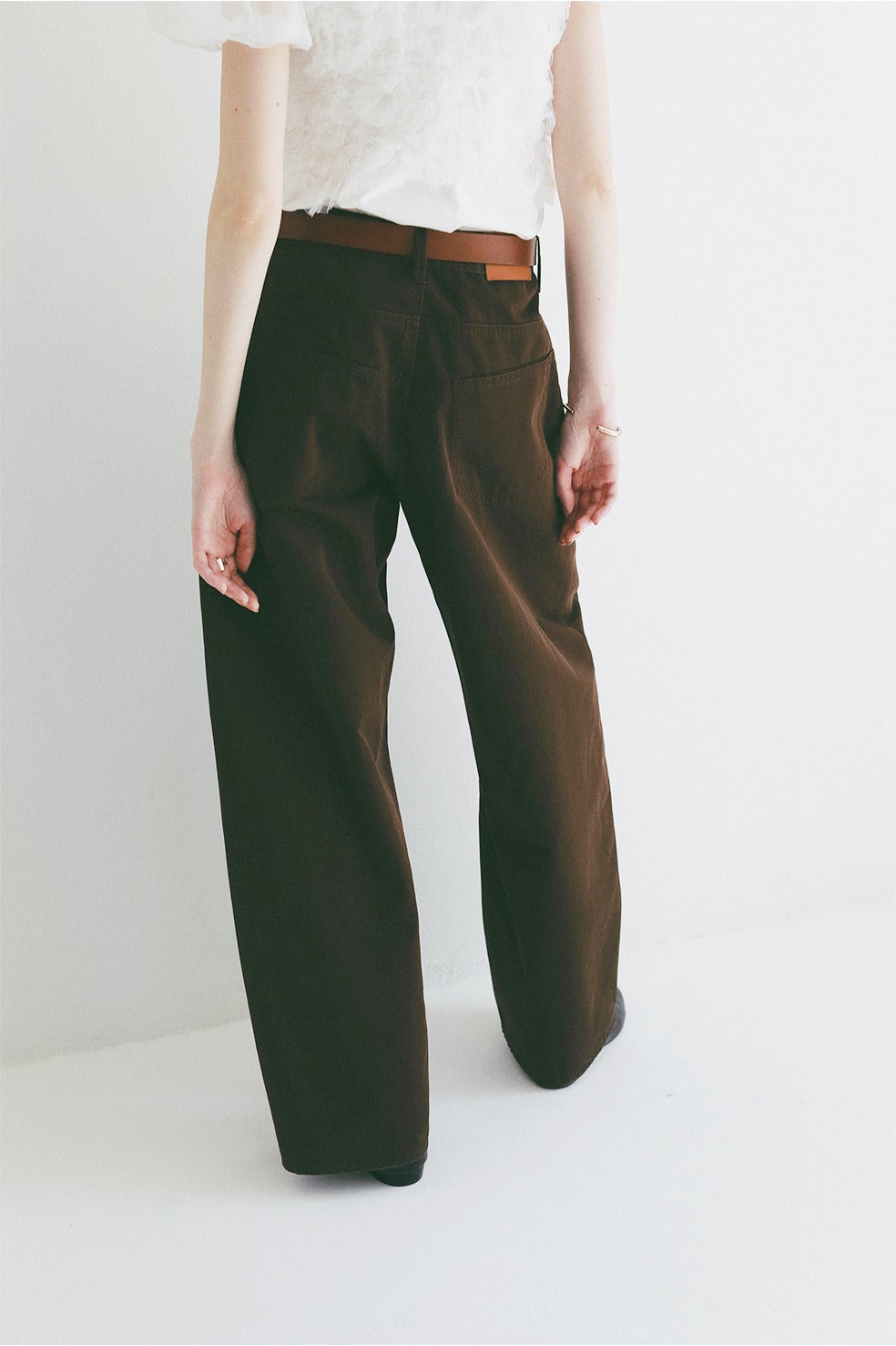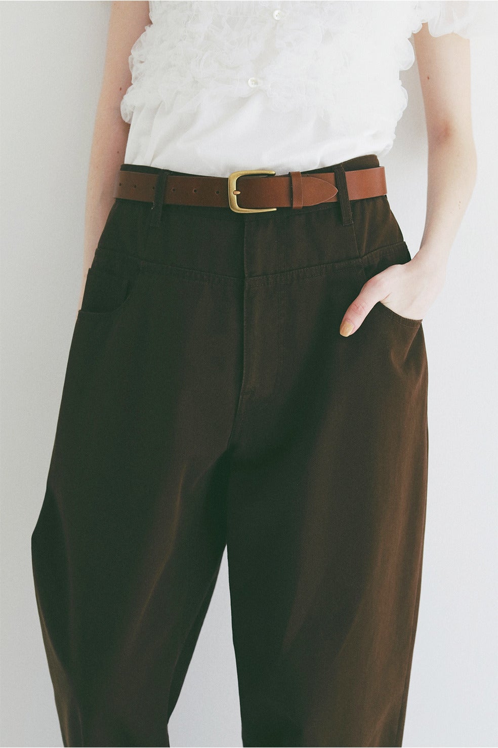 洗いを施すことで程よくカジュアルダウンした素材感に仕上げ、上品さとこなれ感を両立。一点投入するだけでスタイリングにニュアンスを加える、大人のデイリーパンツです。