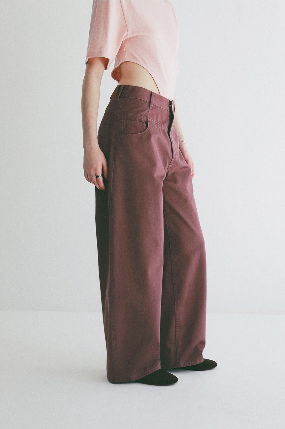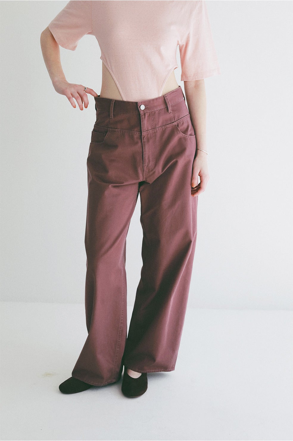 レイヤーウエストデザインと特徴的なレッグシルエットが、体型をさりげなくカバーします。
