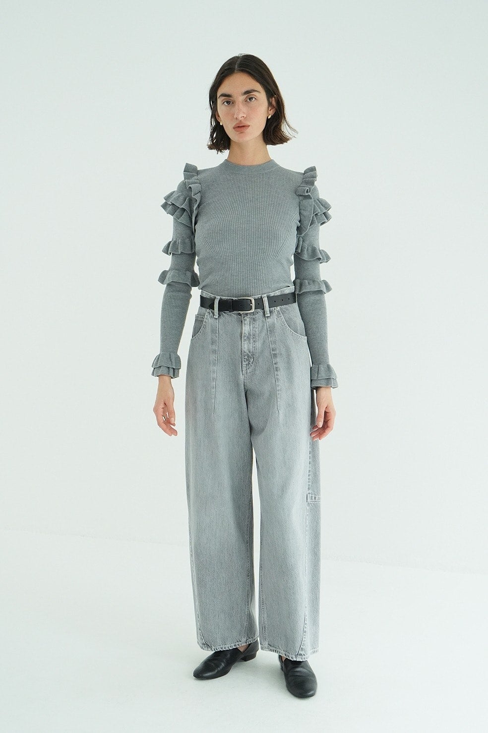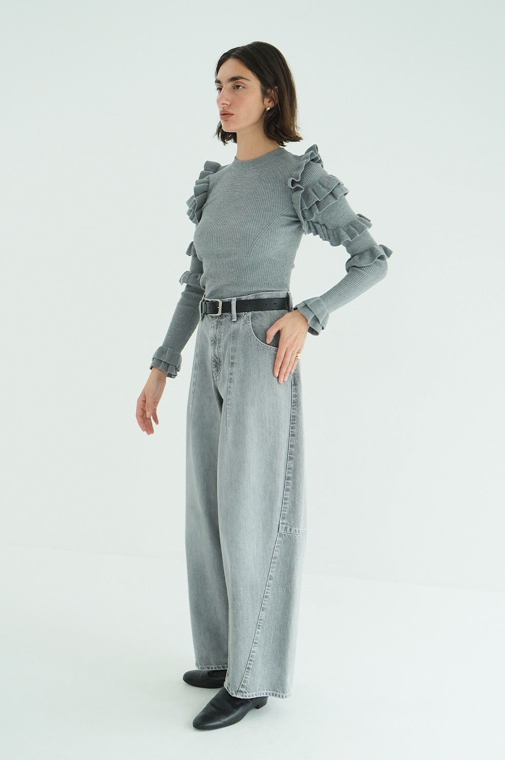 バルキーで立体的なコクーンシルエットが特徴のデニムパンツ。