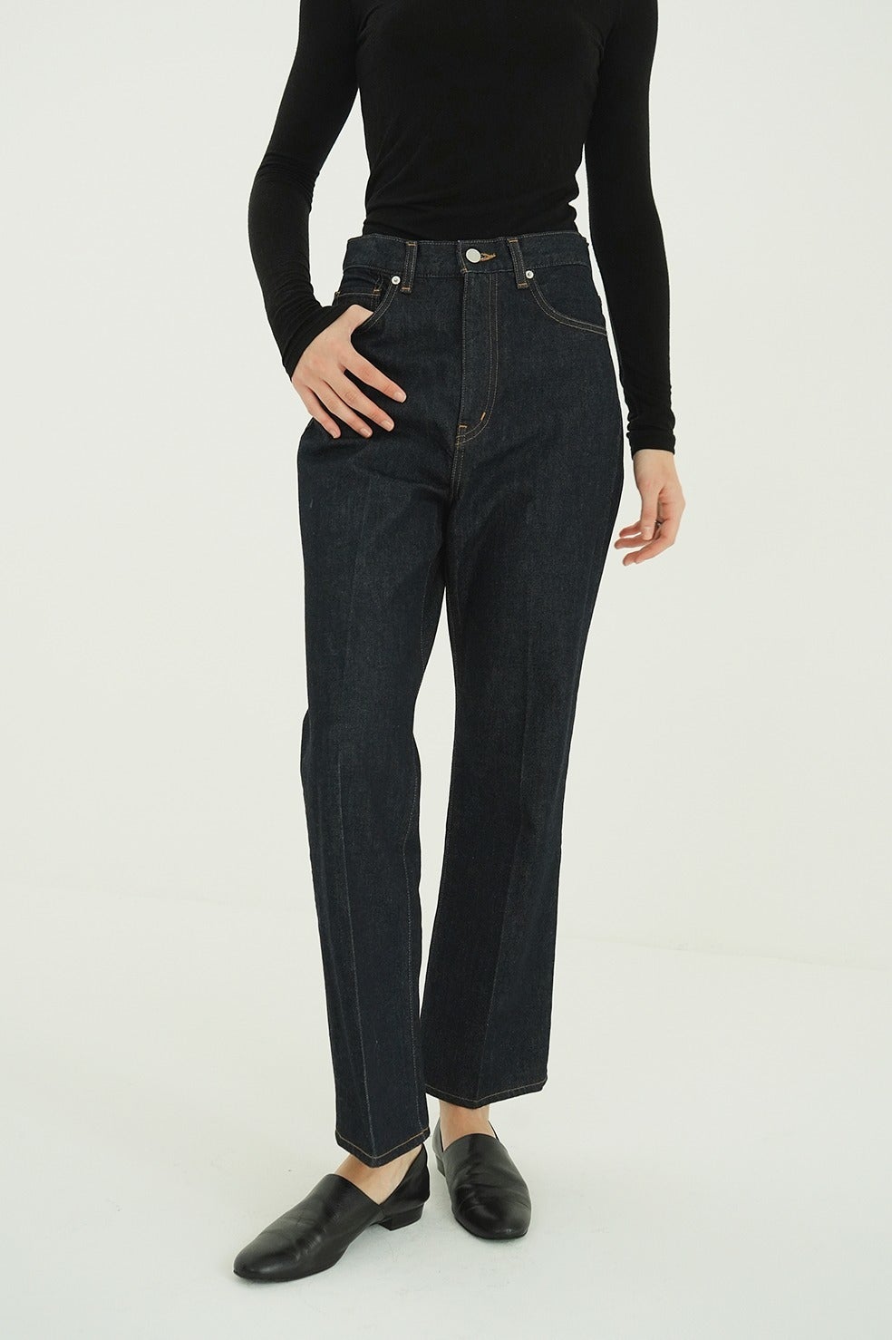 22AWに登場した人気のシルエット。センタープレスが入ったハイウエストのストレートデニムパンツです。