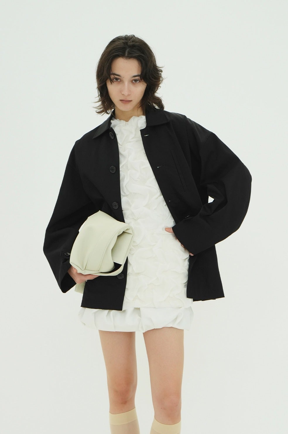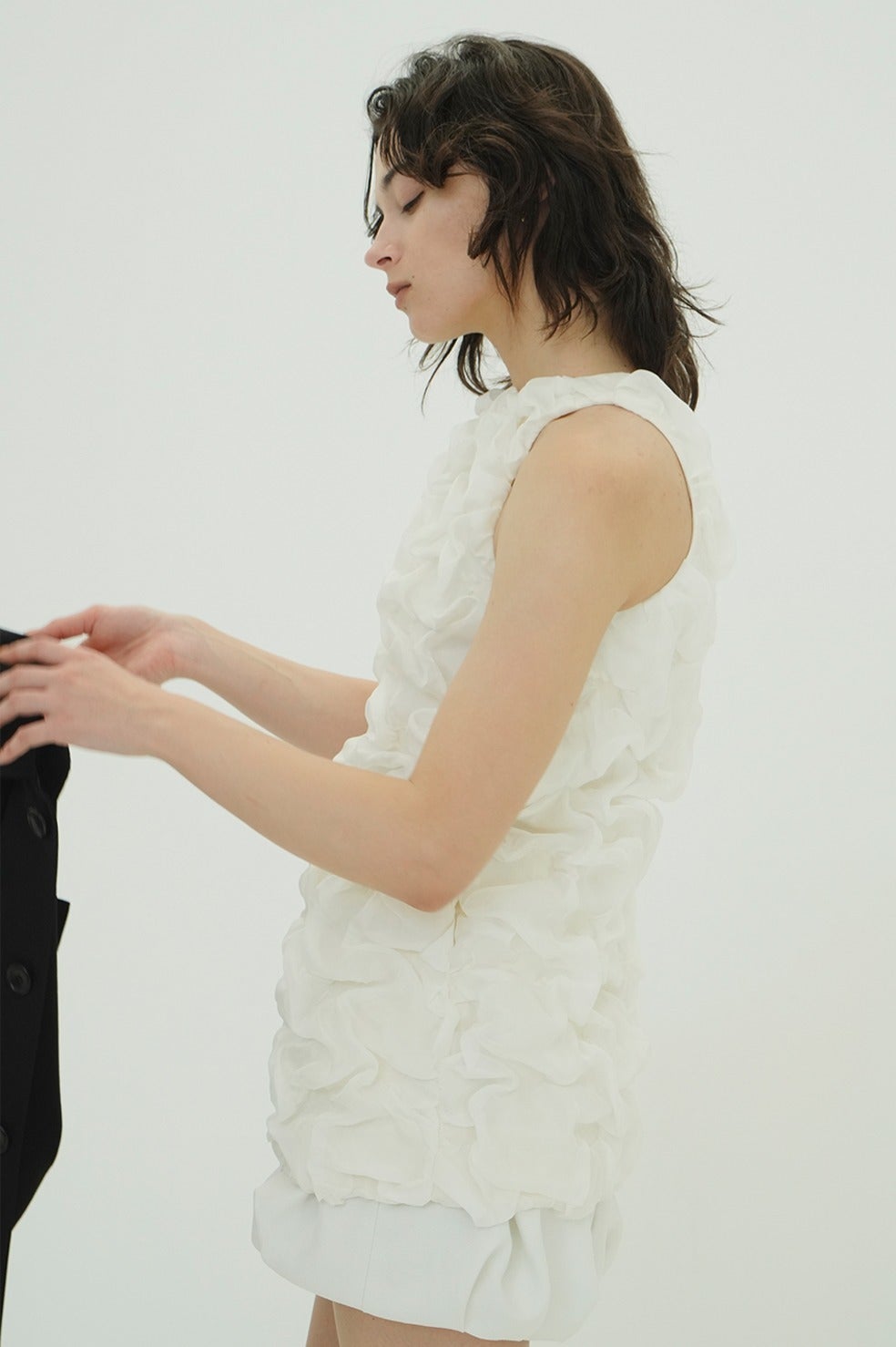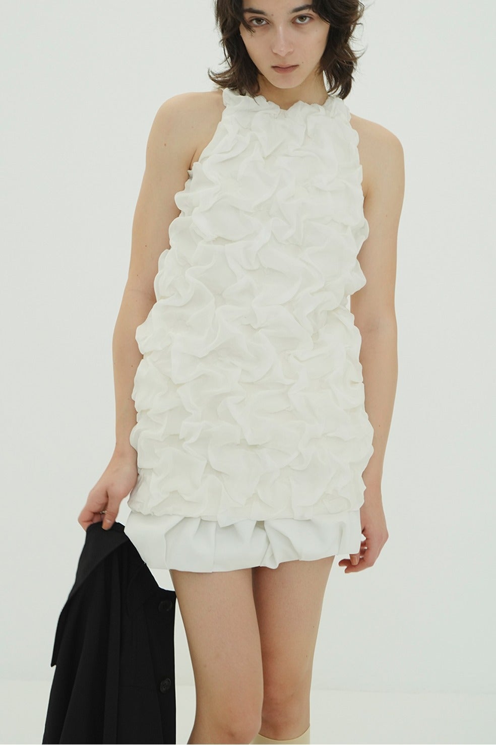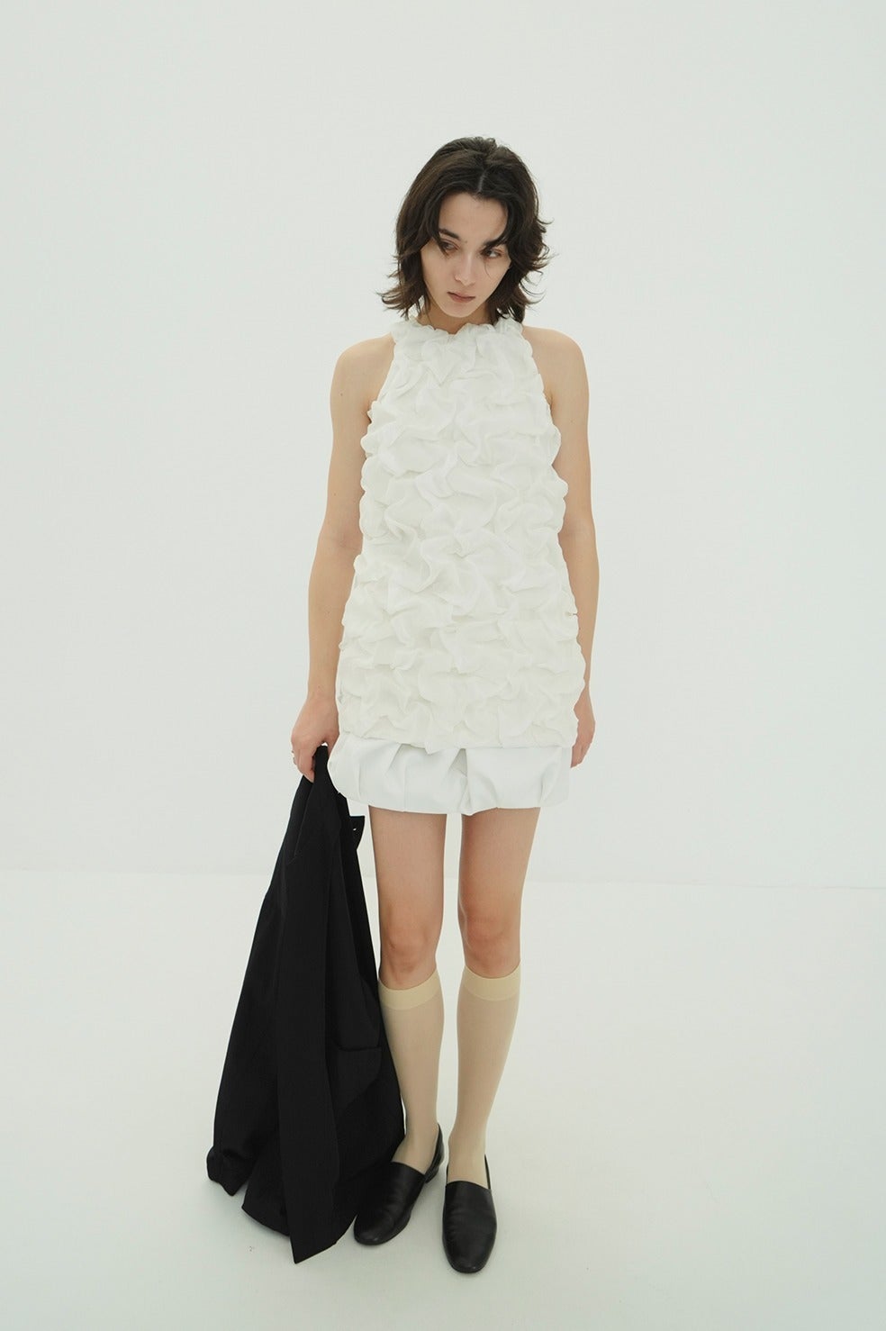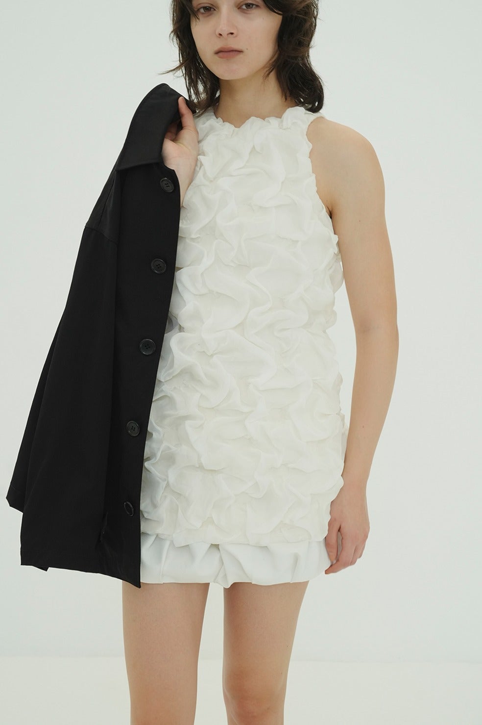 接結ジャカードで立体的に表現した素材がポイントのミニワンピース。
