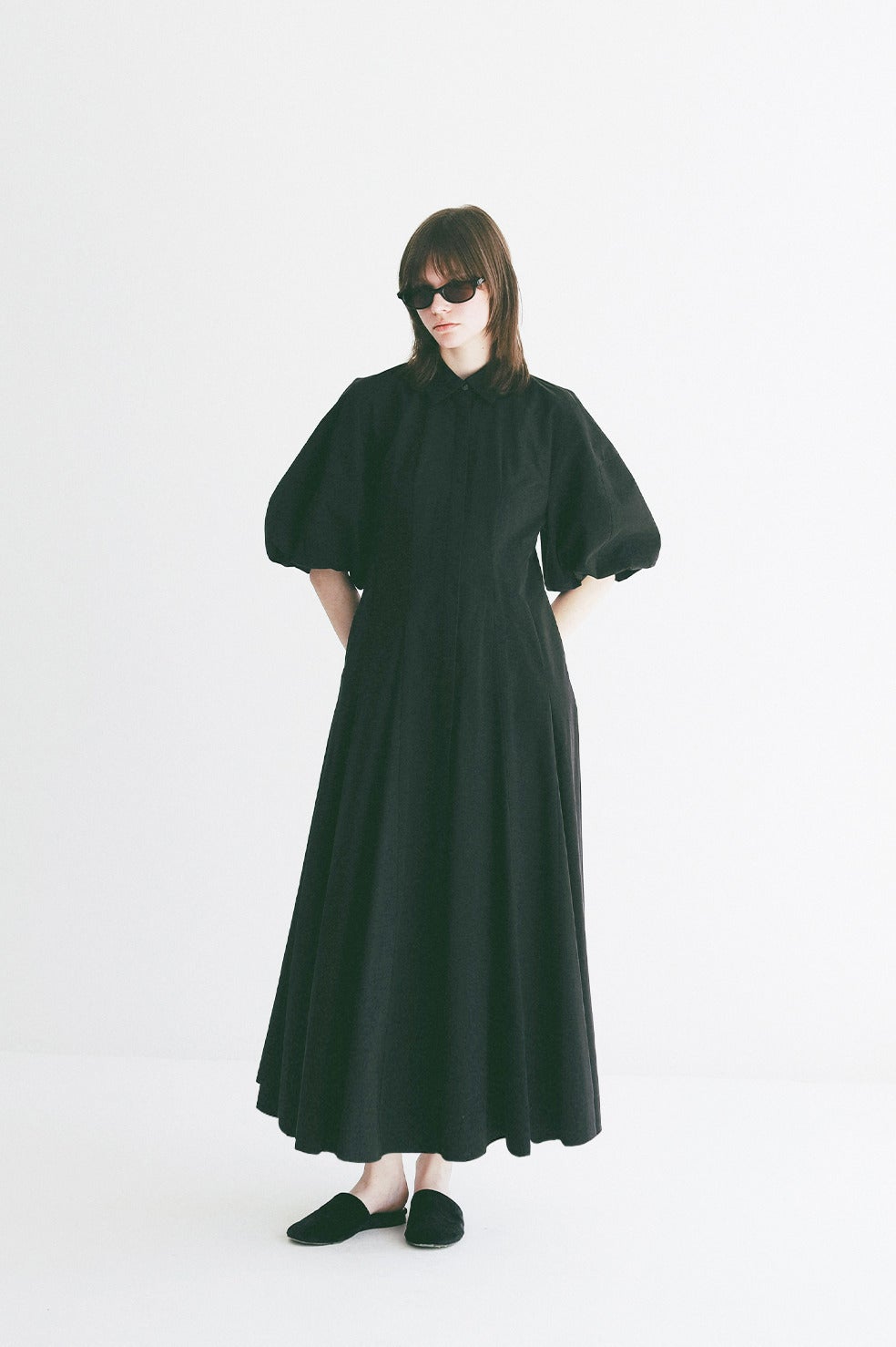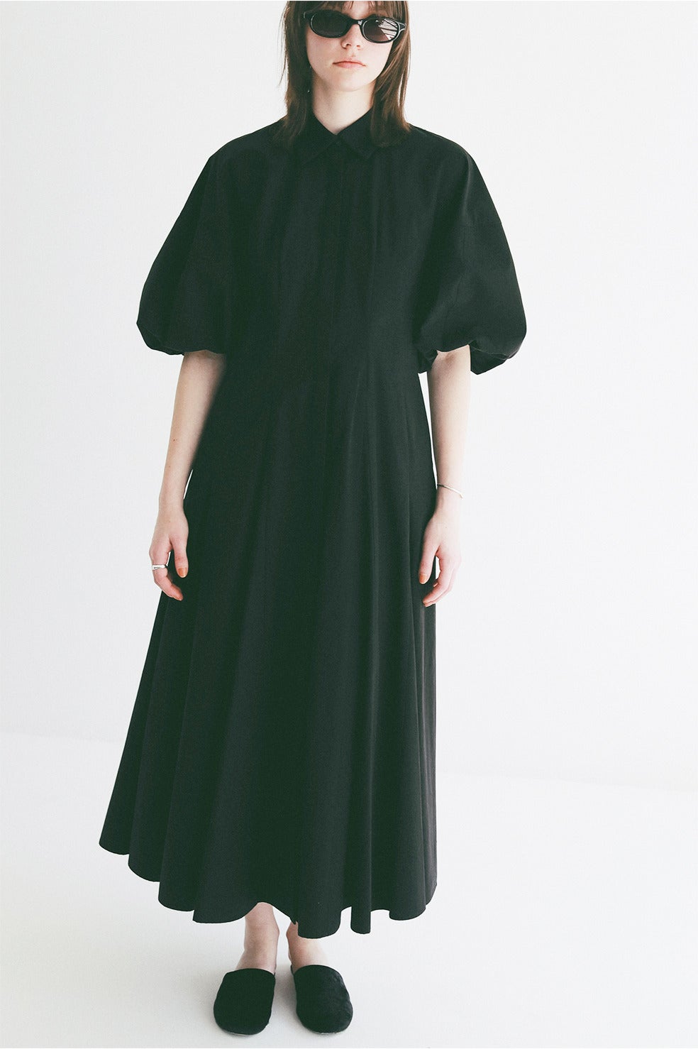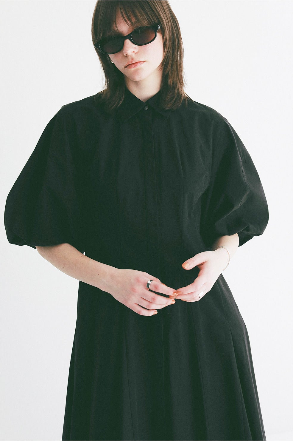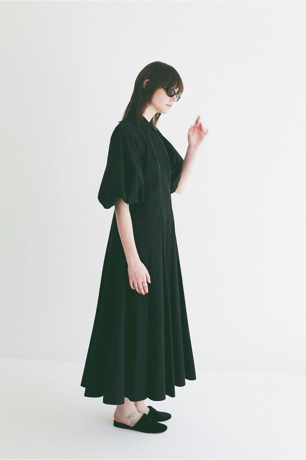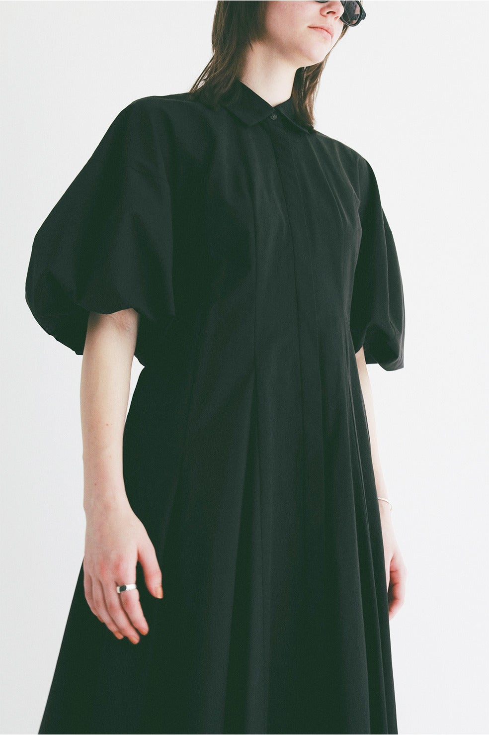 CLANEらしいボリュームのあるバルーンスリーブが女性らしさを引き立てつつ、襟やフロントの開きでマニッシュなエッセンスをプラス。一枚でスタイルアップが叶う、洗練された存在感のある一着です。