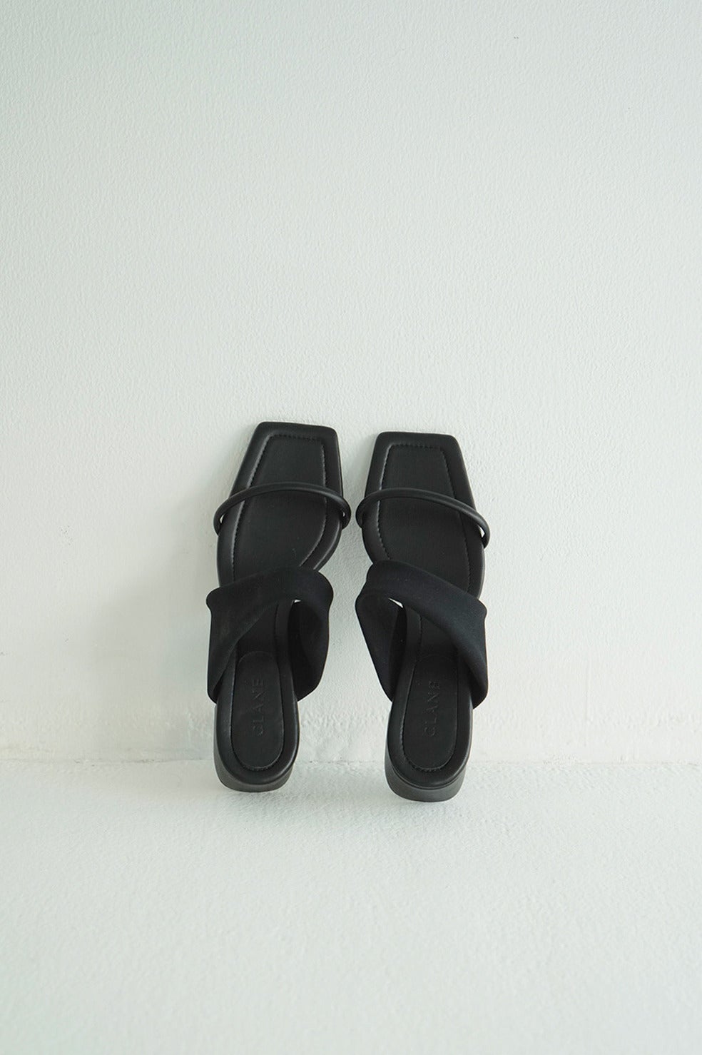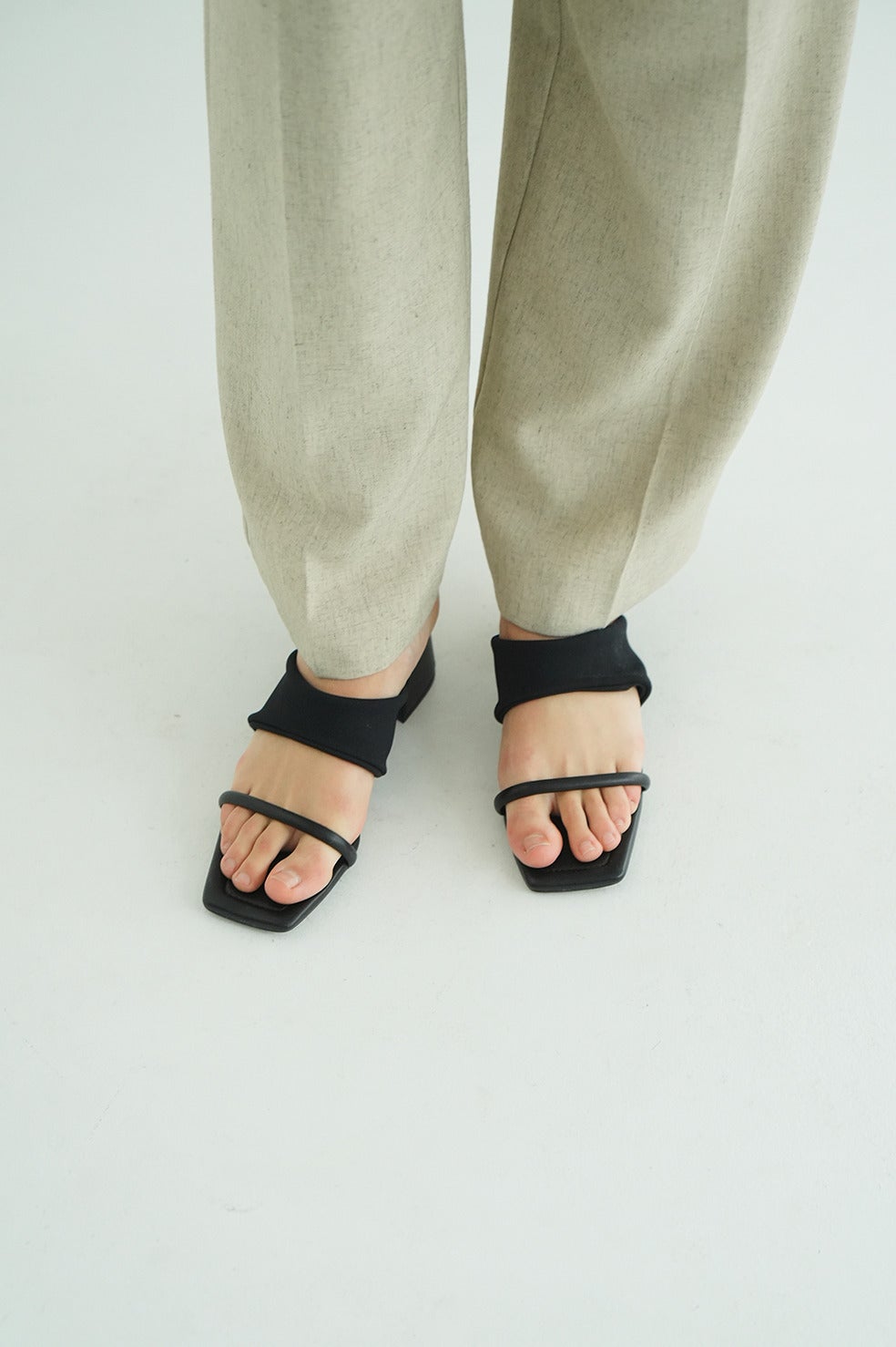 半円型のラインストラップが印象的な、モードでスタイリッシュなミュール。