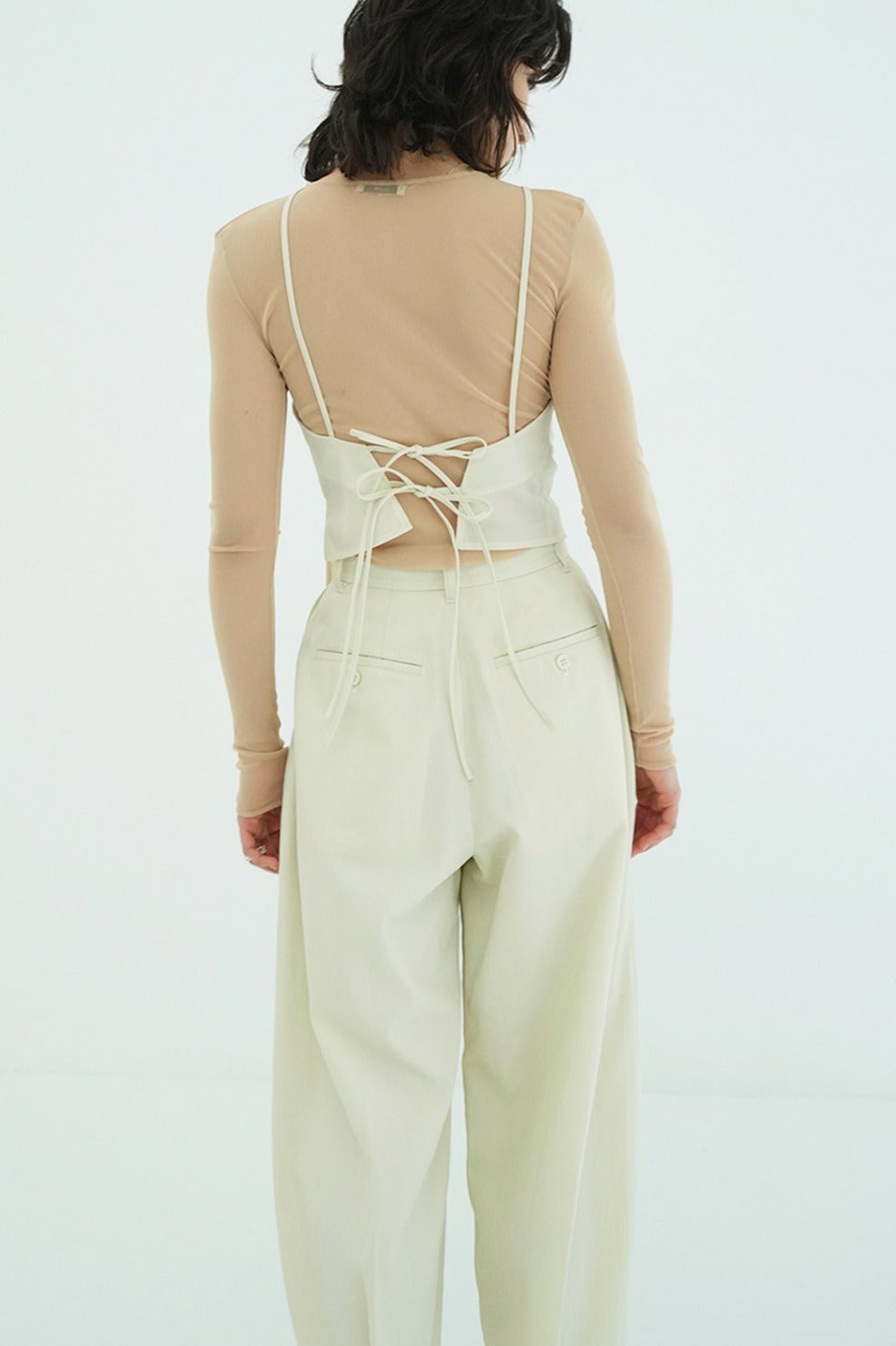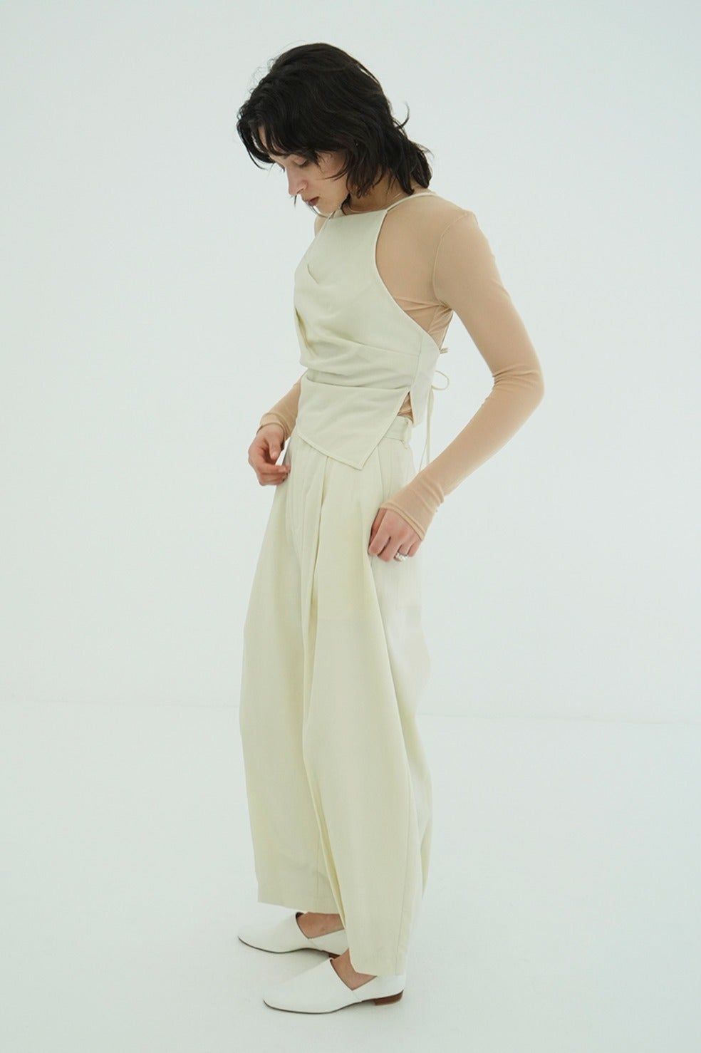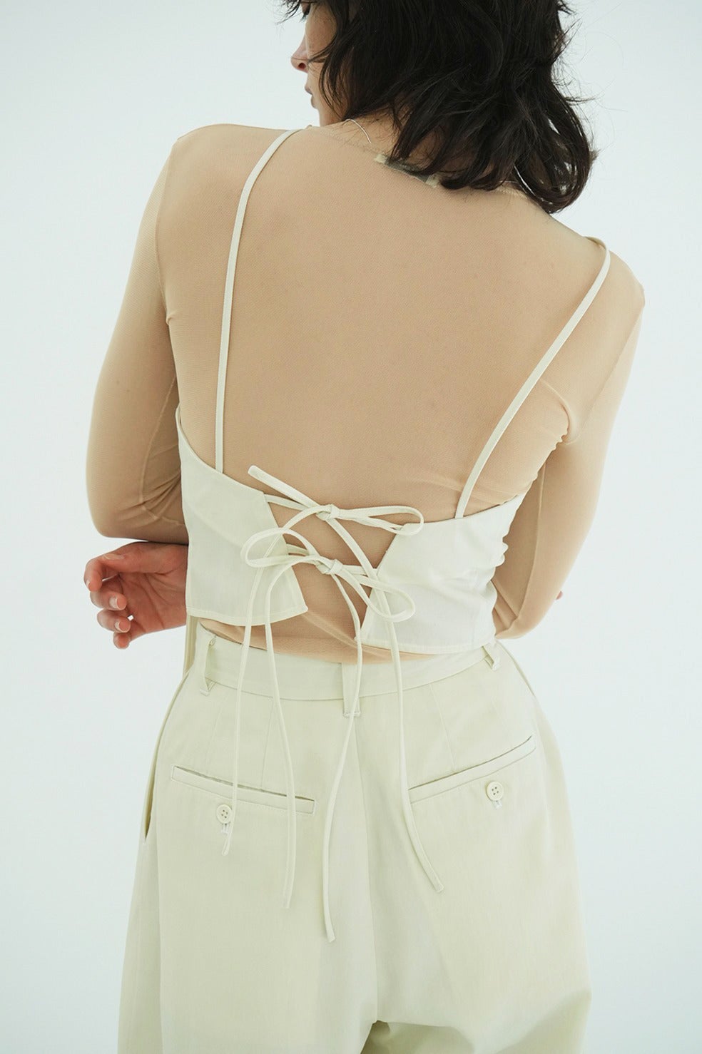 ドライタッチで洗練された表情感が魅力のウールナイロンシリーズから登場したモードビスチェ。