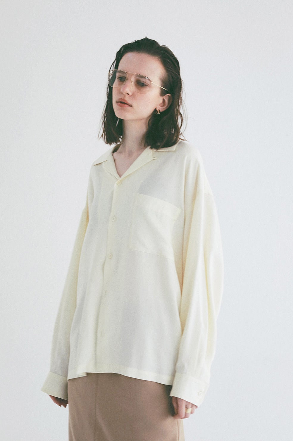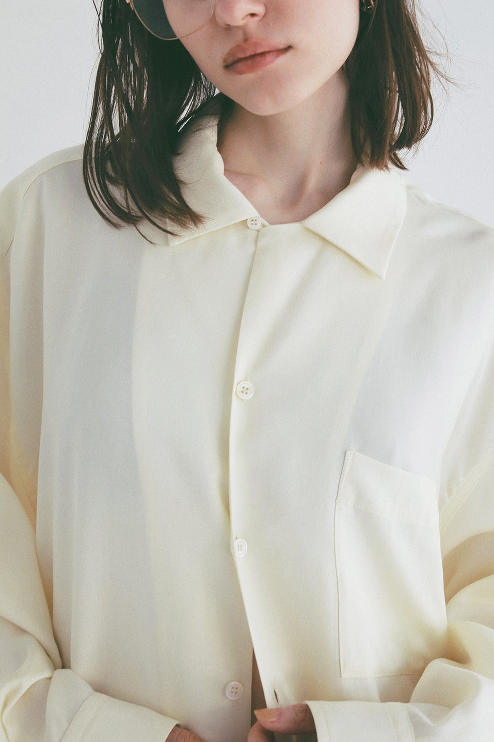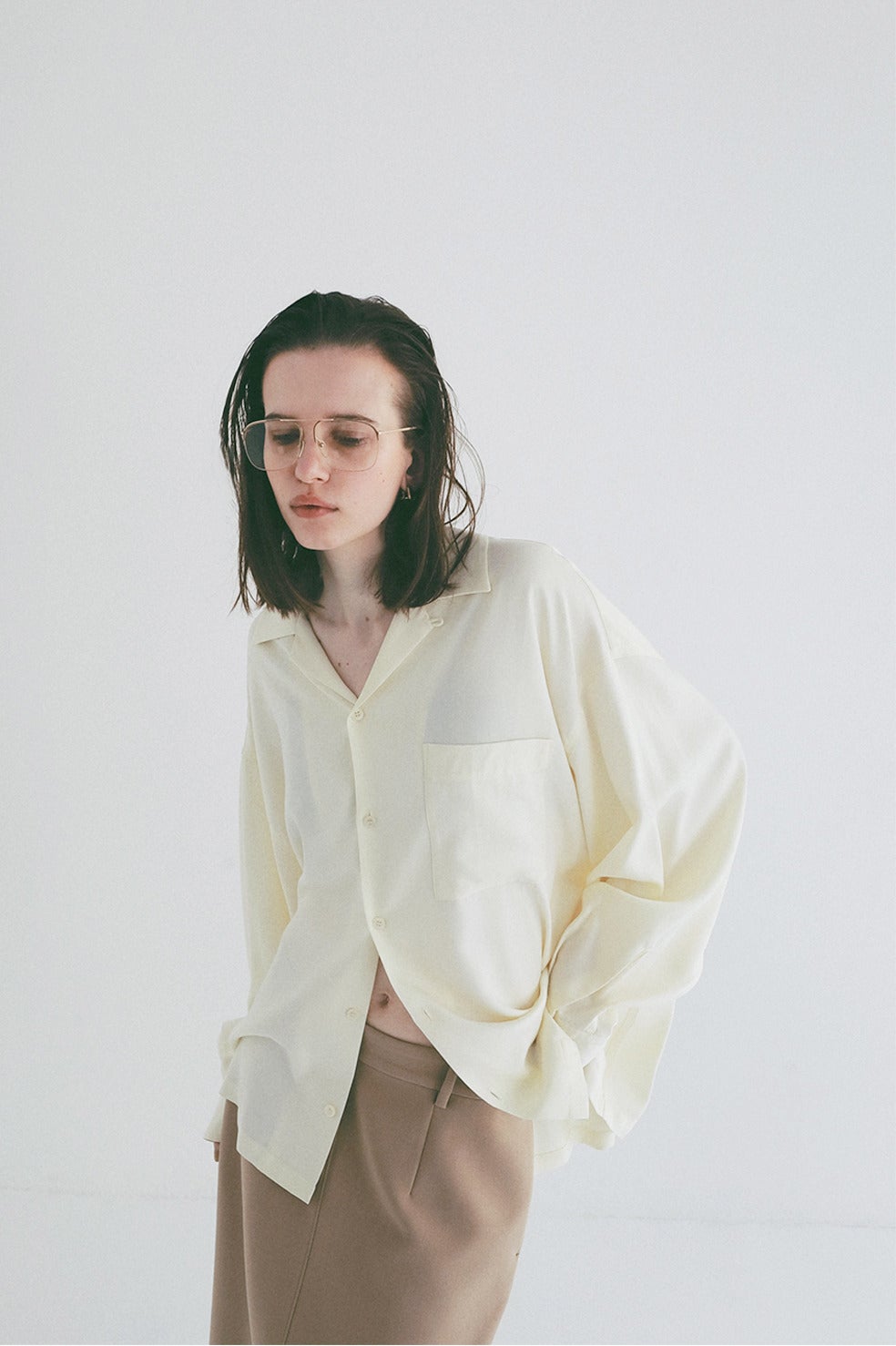 程よい光沢感と美しいドレープが上品な印象を与える、テンセル素材のオープンカラーシャツ。