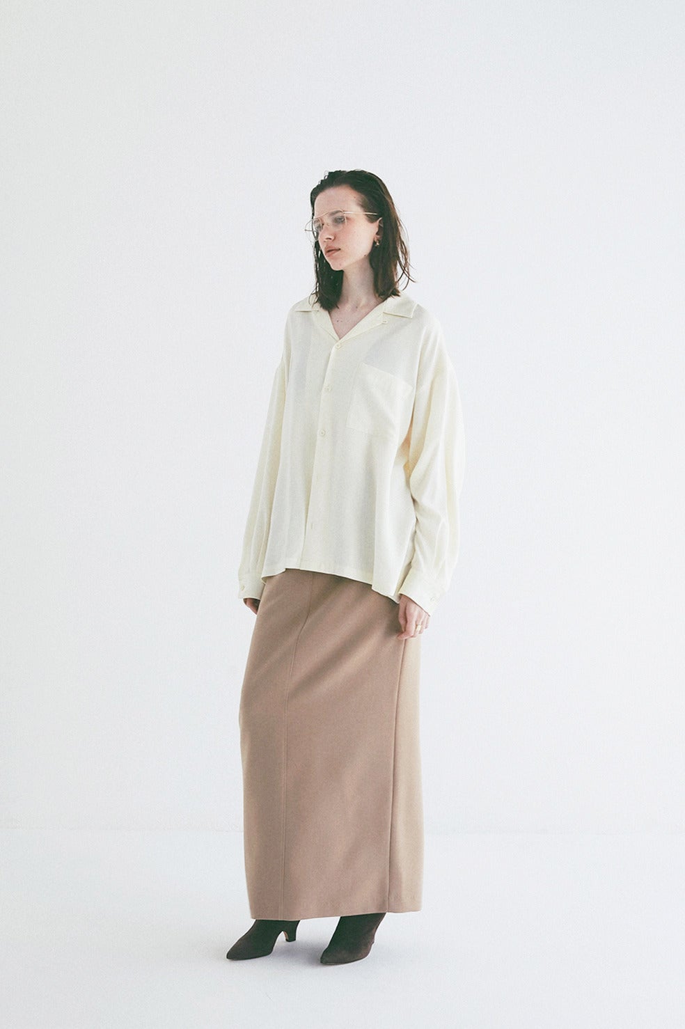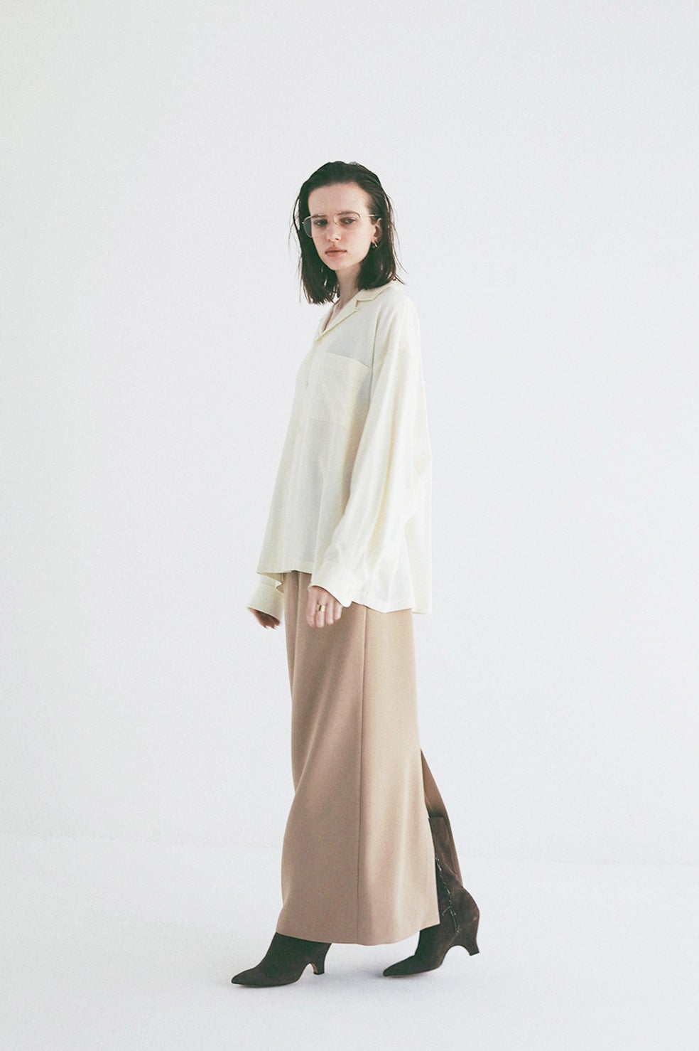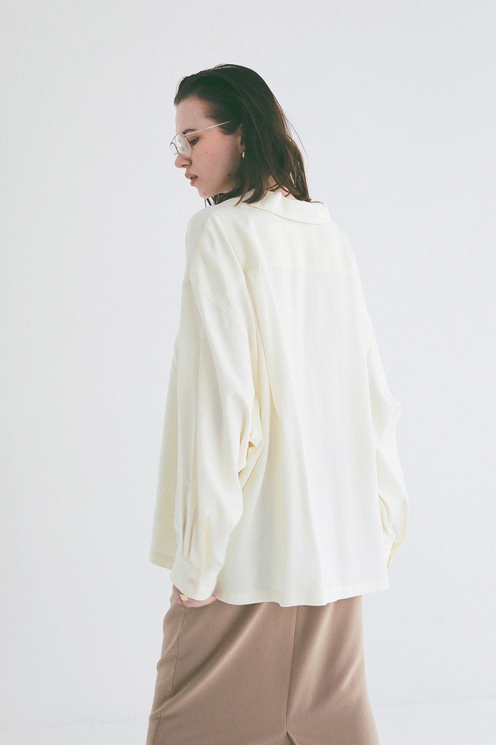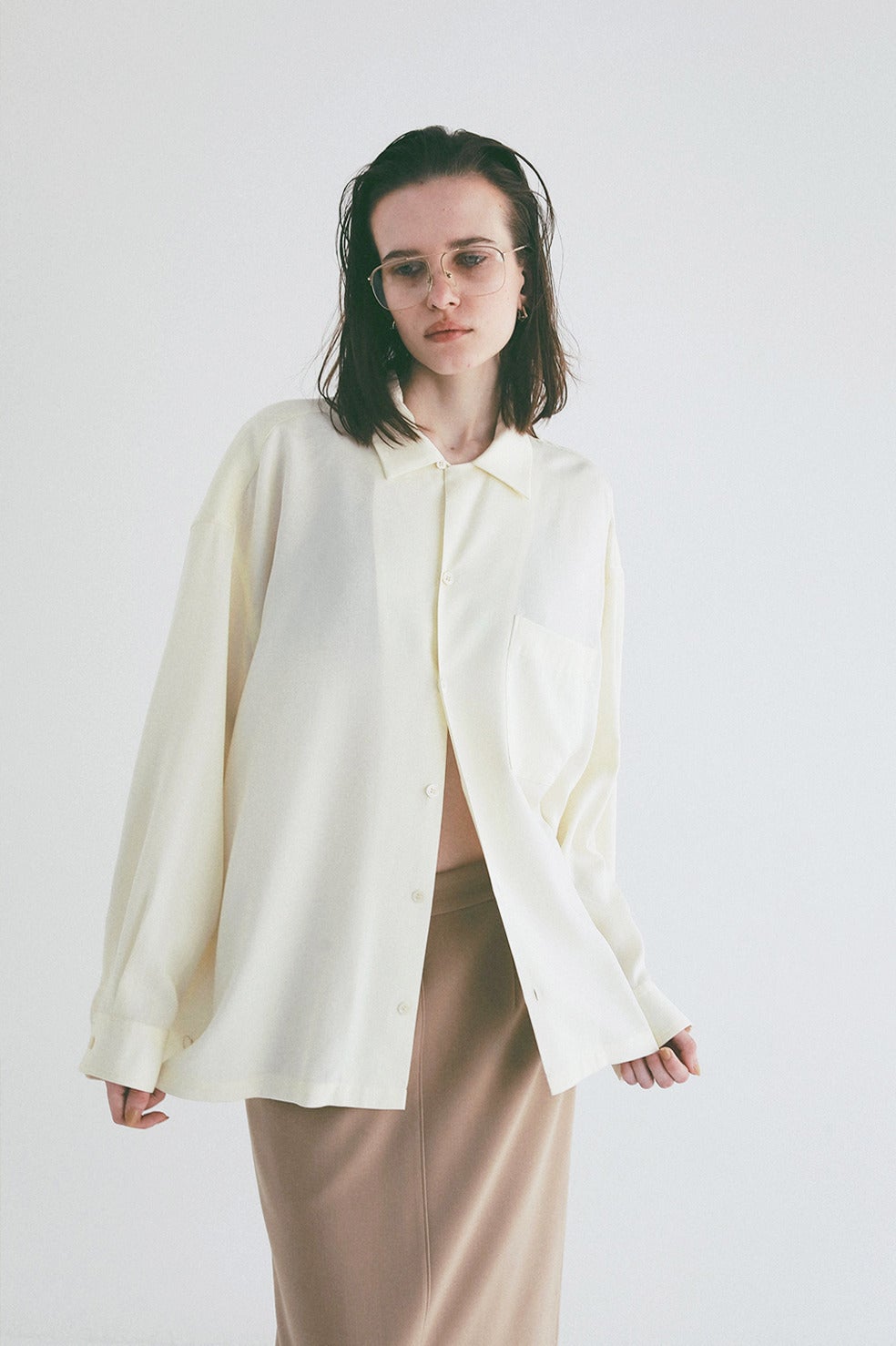 程よい光沢感と美しいドレープが上品な印象を与える、テンセル素材のオープンカラーシャツ。