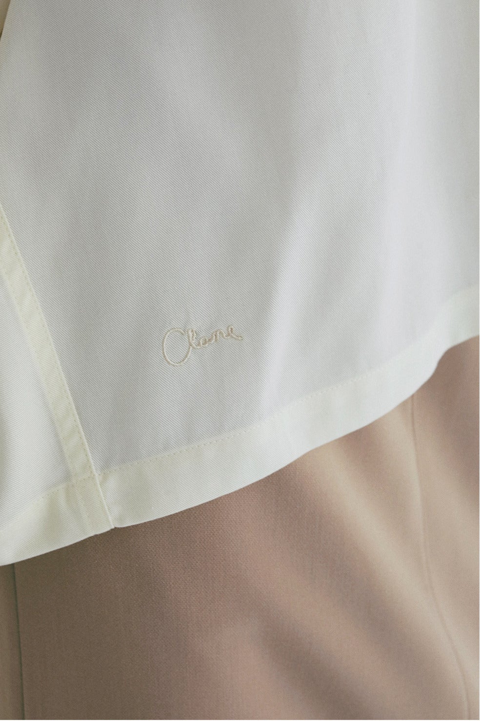 裾には微配色の刺繍をさりげなく施し、シンプルな中に奥行きをプラス。