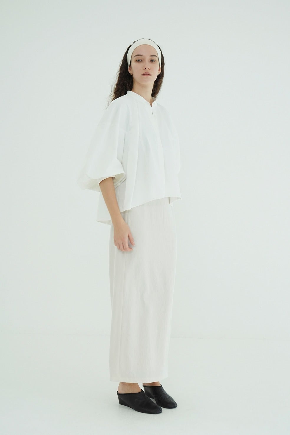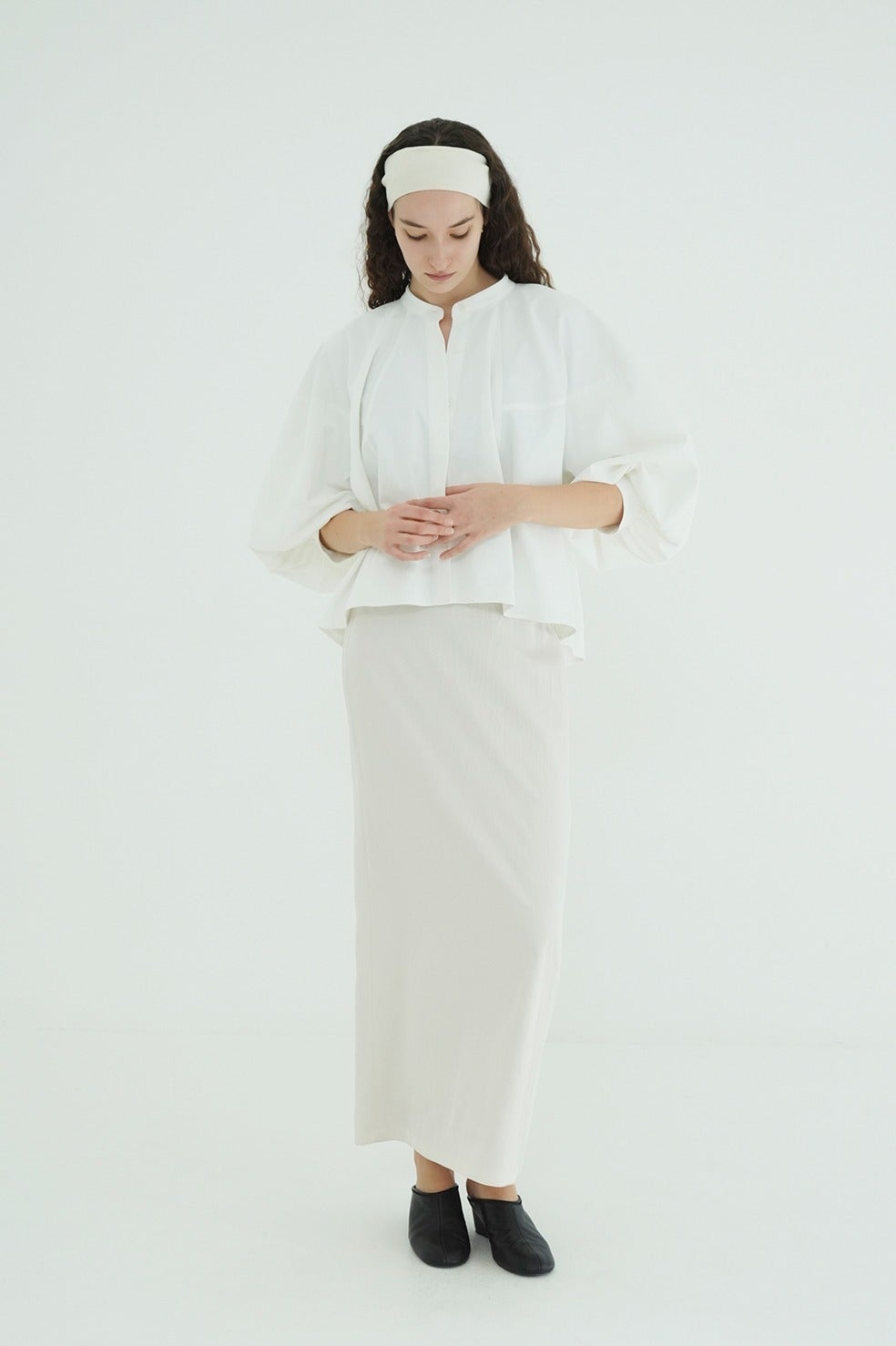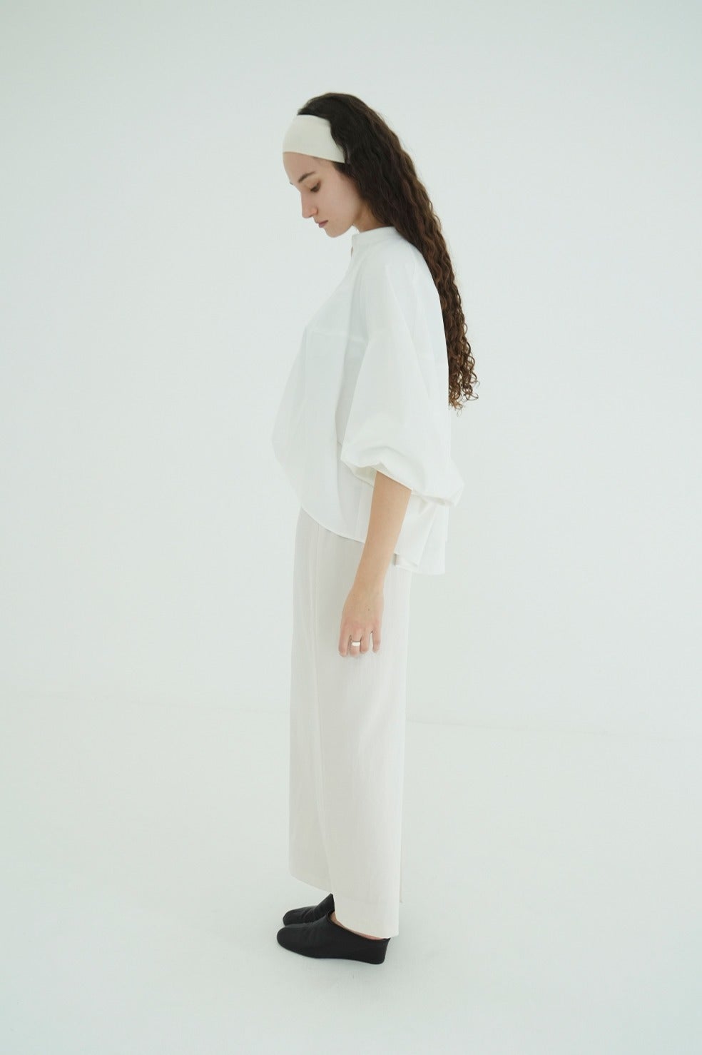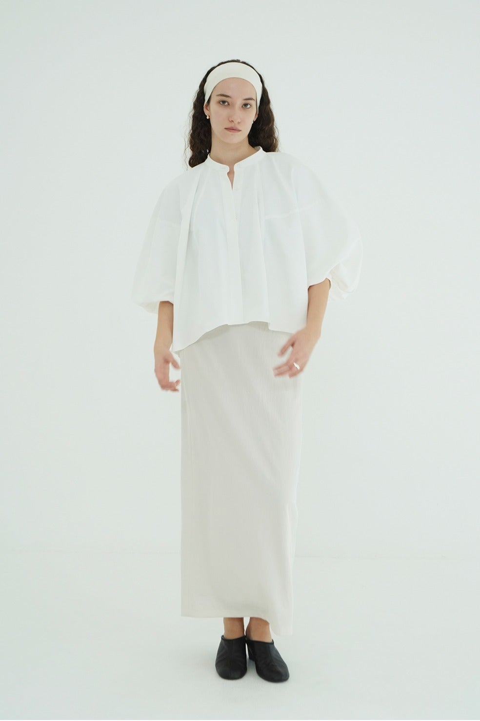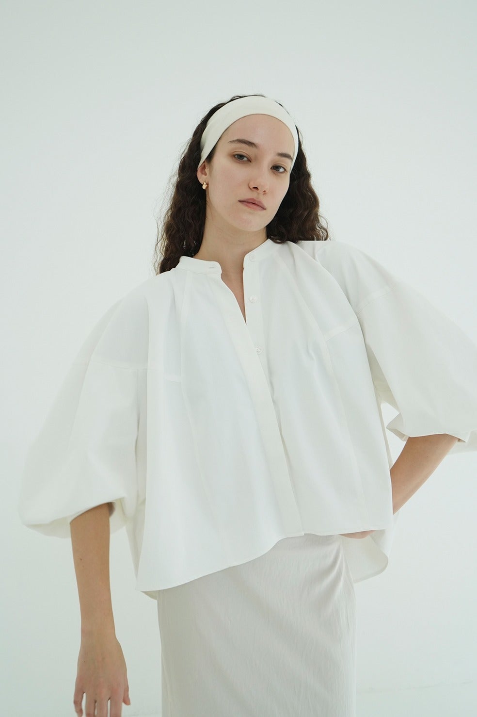 昨年好評いただいた、ボリュームのある袖と丸みのあるフォルムが印象的なシャツトップス。
