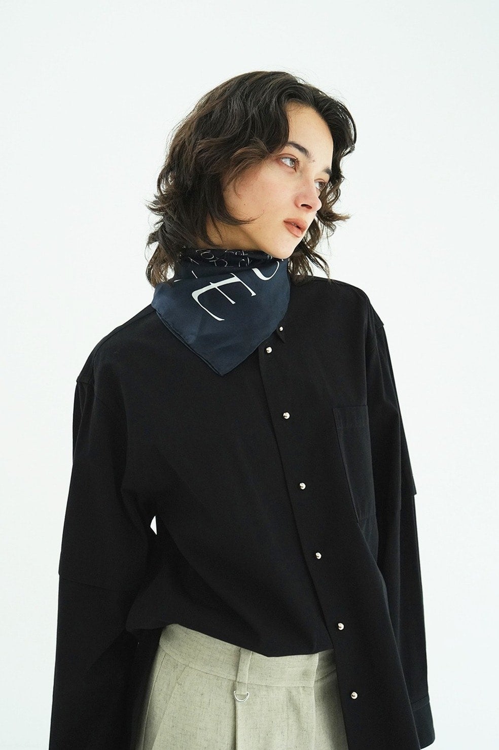 艶やかなシルク素材に、CLANE TOKYOのオリジナルモチーフをプリントしたスカーフ。