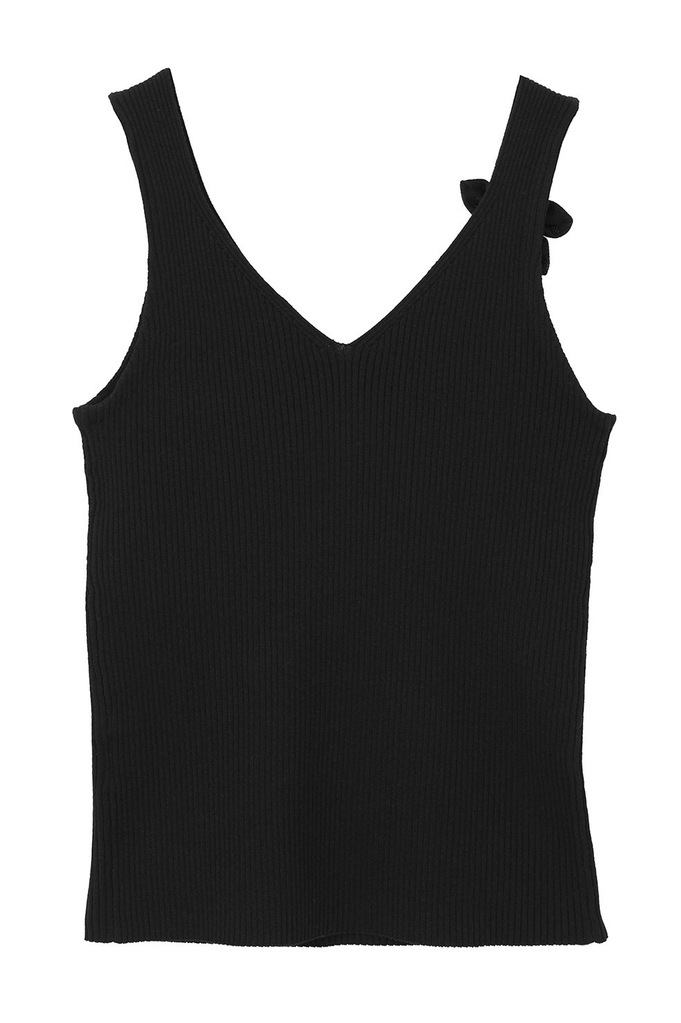 Vネックのタンクトップは、程よい深さの前開きに設定。ショルダーの幅や位置にもこだわり、インナーを着用したままでも見えにくい設計に仕上げました。