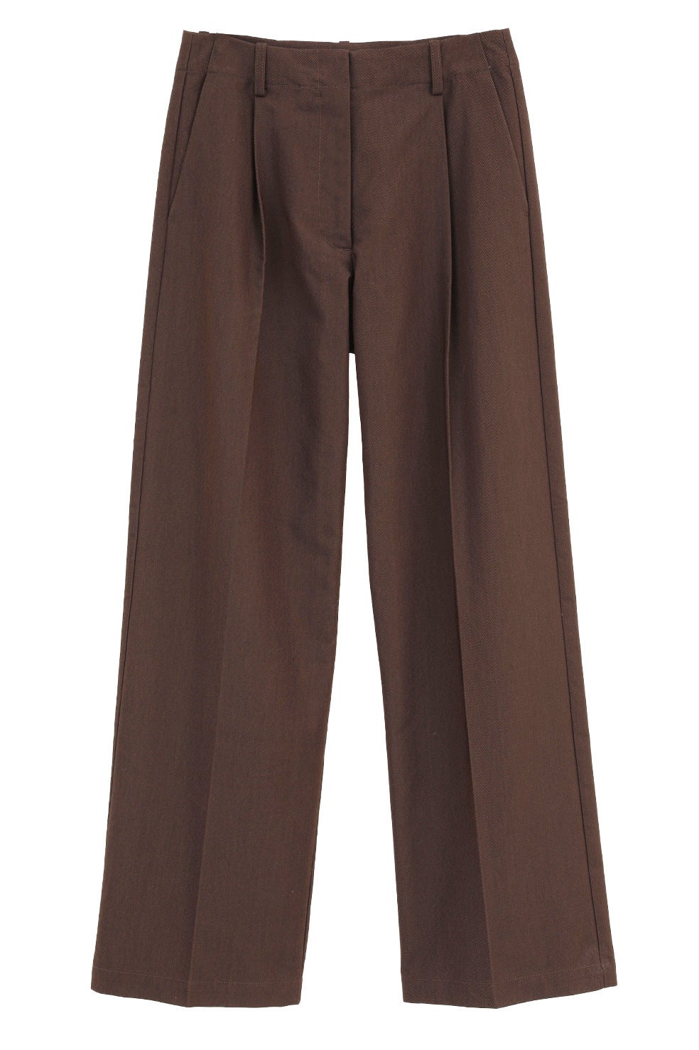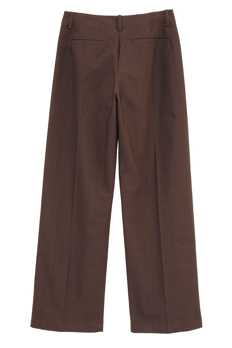 程よい太さのストレートシルエットにセンタープレスを施し、カジュアルな素材ながらもモードな印象に仕上げました。