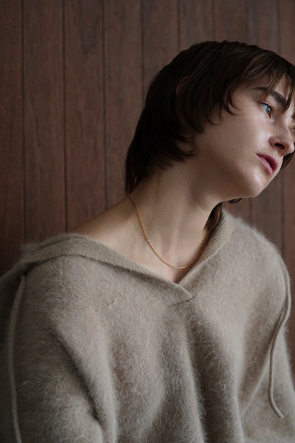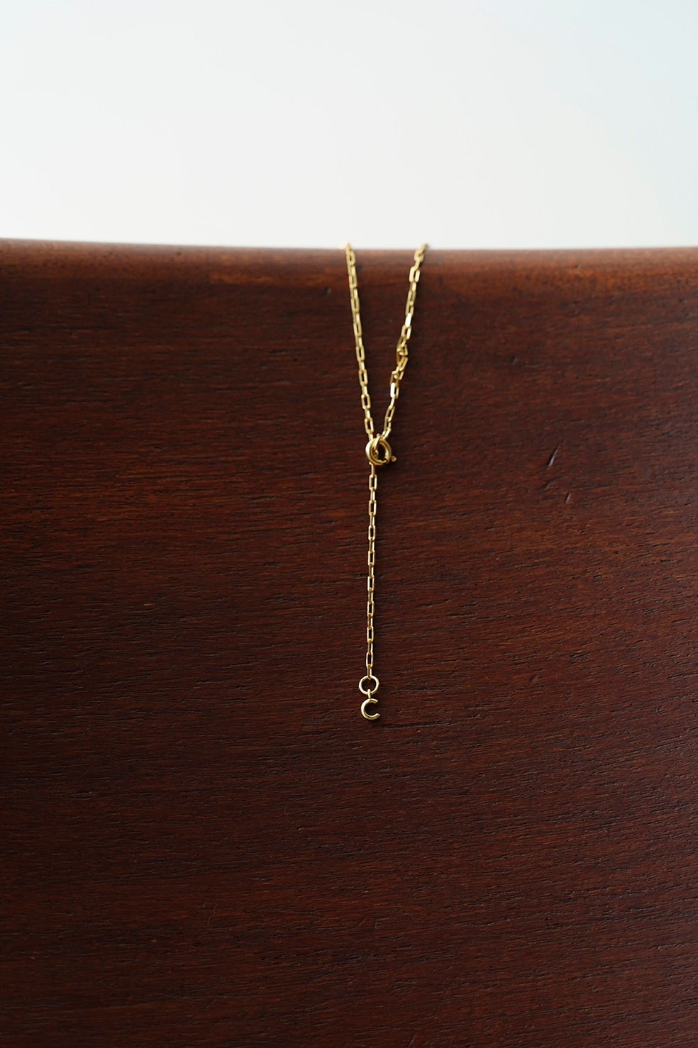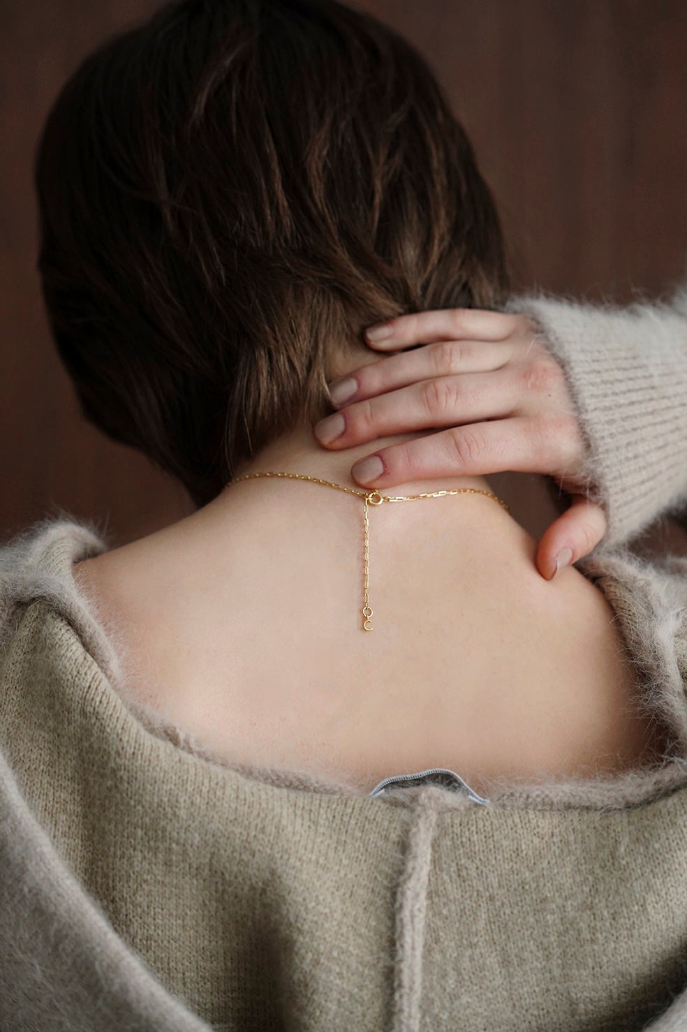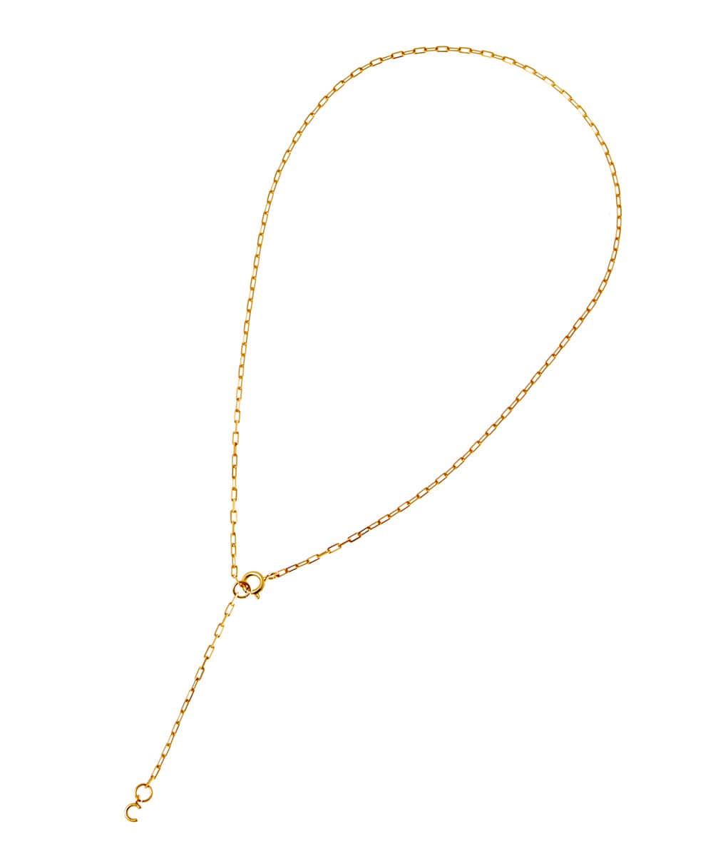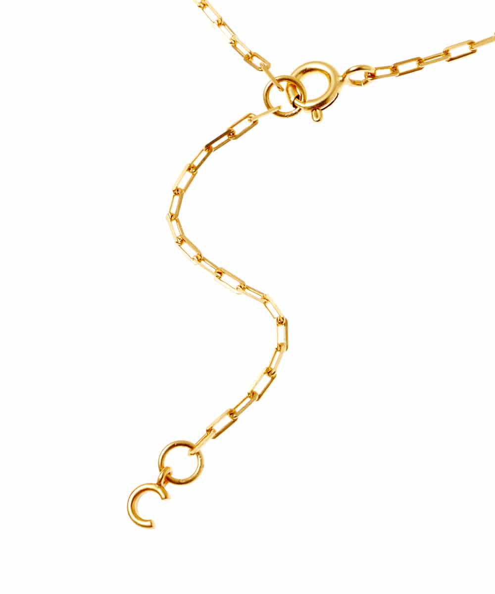 素材はSV925にK14プレーティングの上品なゴールドカラーです。チェーンの長さは、襟ぐりの開きに合わせて変えられる2段階調節仕様です。