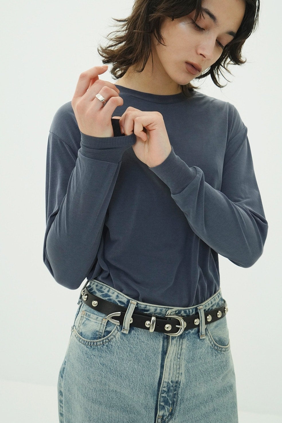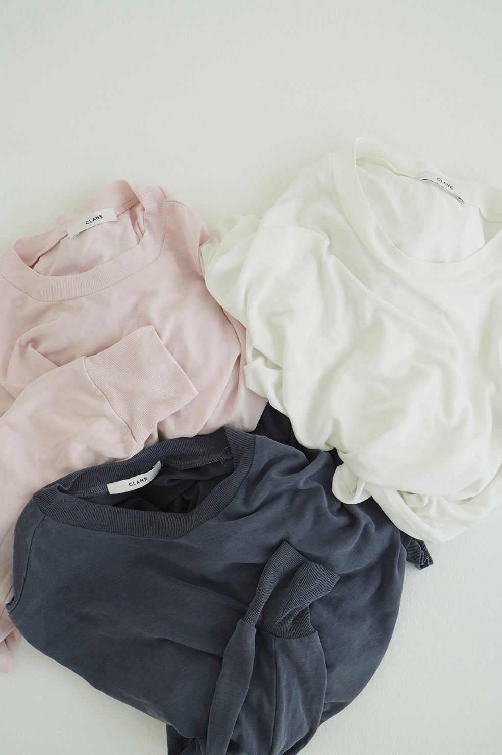 ソフトで落ち感のある素材を使用しているため、着心地が軽く、パンツと合わせてゆるっとルーズに着こなすのもおすすめです。ヒップが隠れる丈感で、1枚持っておくと実用的なオールシーズン使えるトップスです。