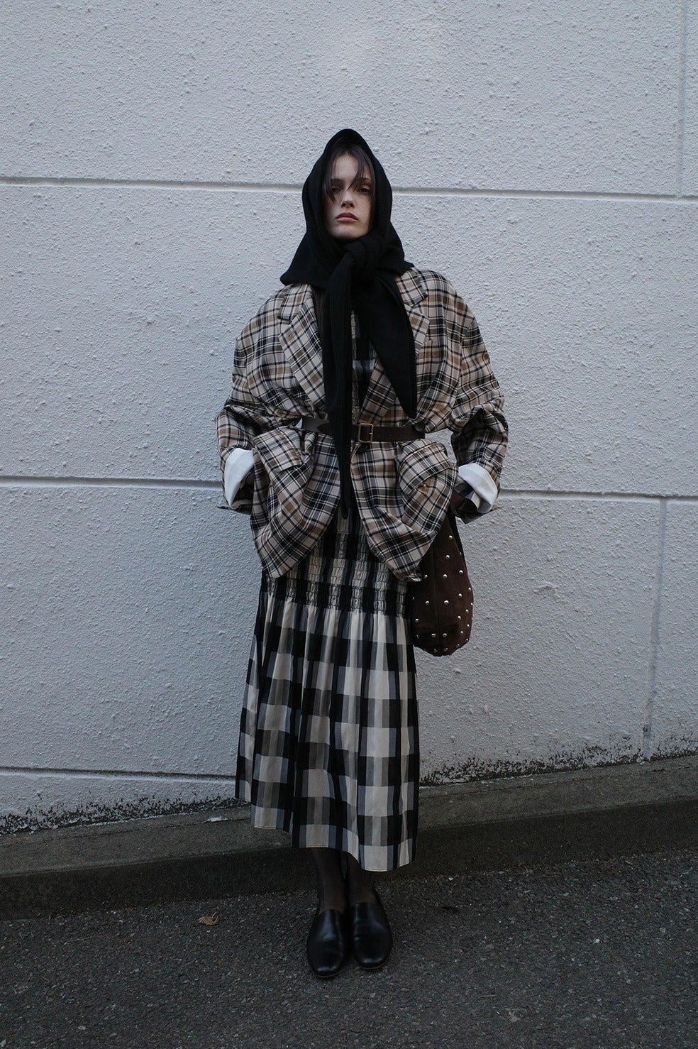 生地には膨らみのある太番手のウーリー糸を横糸に使用し、しっかりとした質感ながら軽さのある日本製素材を採用。CHECK生地は、タテ糸とヨコ糸を均等に浮かせる綾織りで仕上げることで、配色のチェック柄を美しくバランス良く表現。ポリウレタンに比べて劣化しにくく、適度な膨らみと伸縮性を長く保つ高伸縮糸「ポリーナ」を使用するなど、細部までこだわり抜いた一着です。