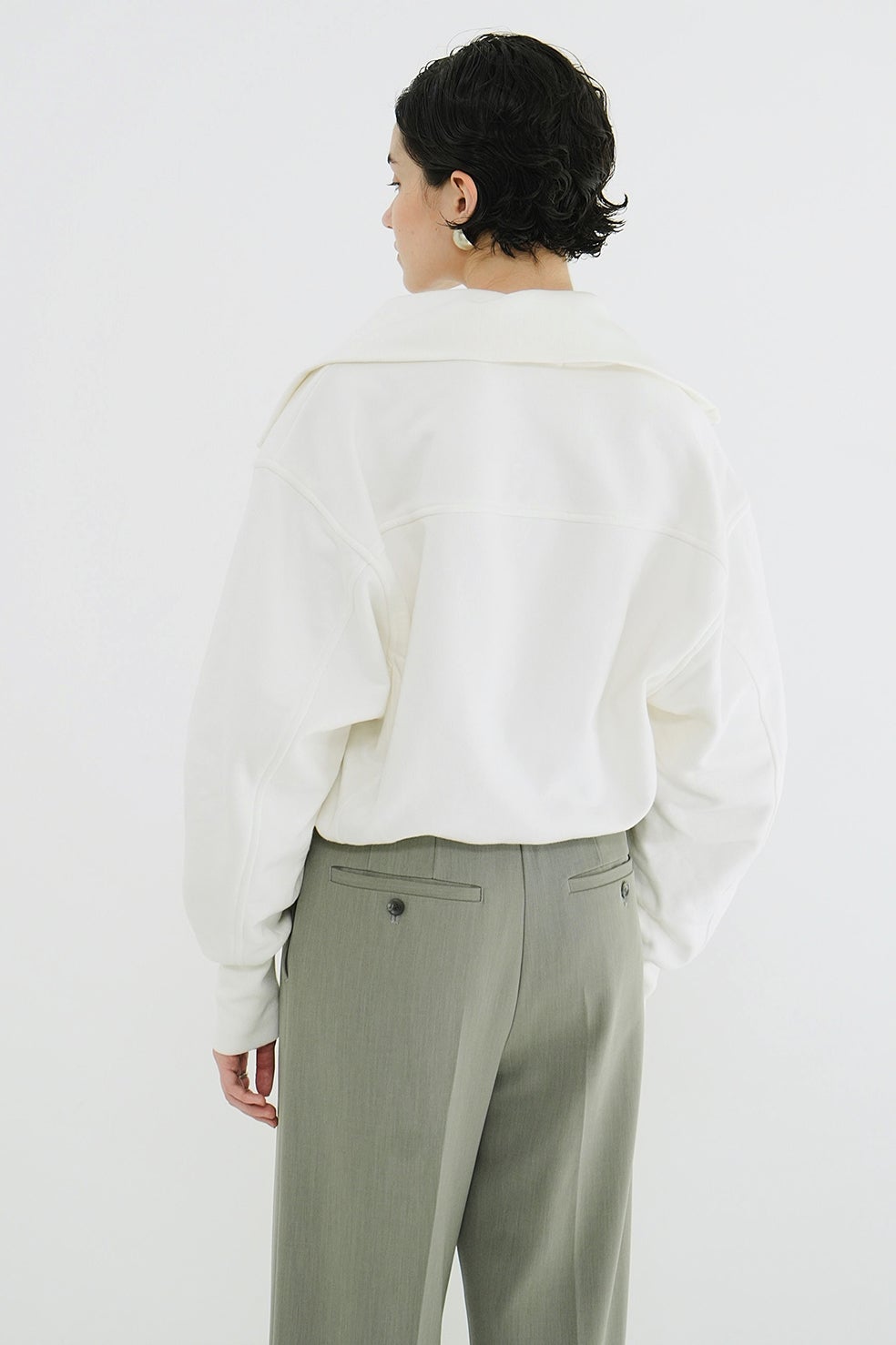 程よいハリとボリュームのある裏毛素材を使用し、表面はクリーンな質感に、裏面は起毛加工でふんわりとした温かみのある肌触りに仕上げました。