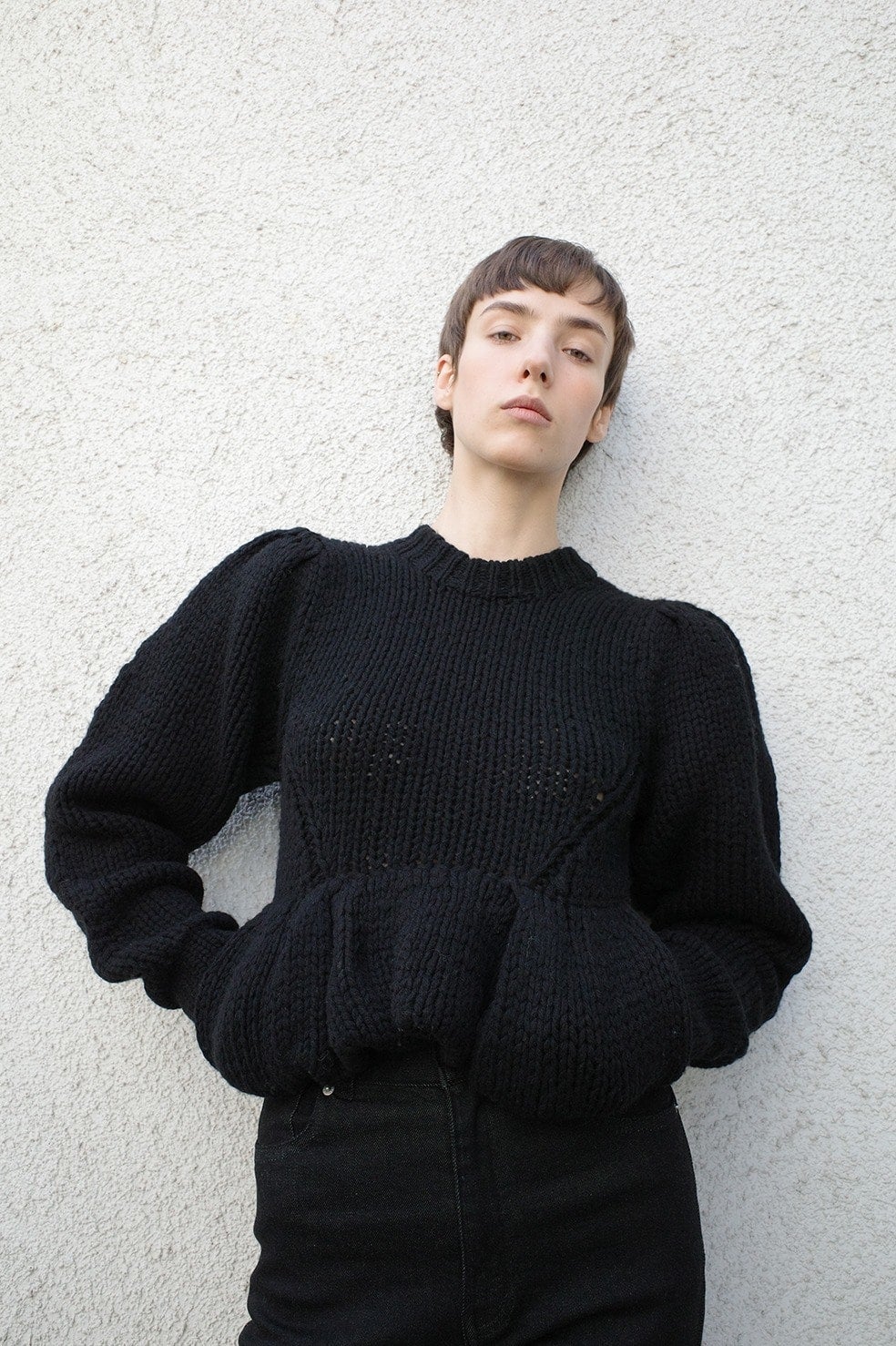 職人の手編みによって丁寧に仕立てられた、ペプラムニットトップス。