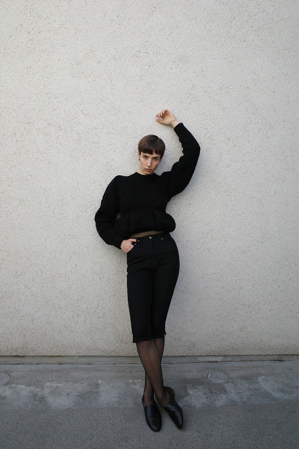 上質なウールナイロン糸を手編み用に軽く撚糸することで、空気を含み、ローゲージながらも軽やかな着心地に。