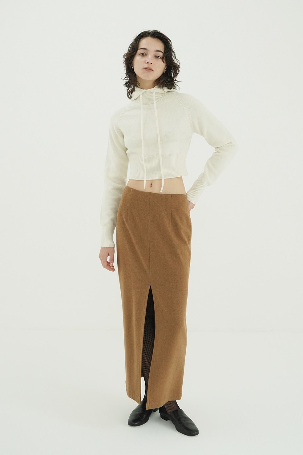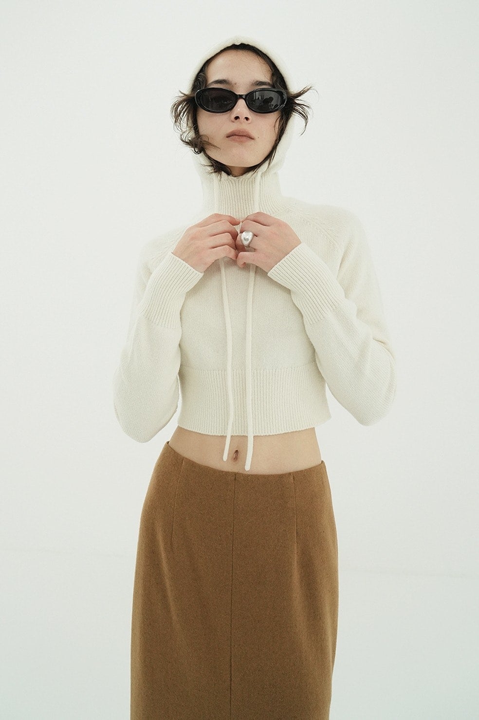 体に心地よく馴染む肉感にこだわり、柔らかいウールを使用したフーディーニット。