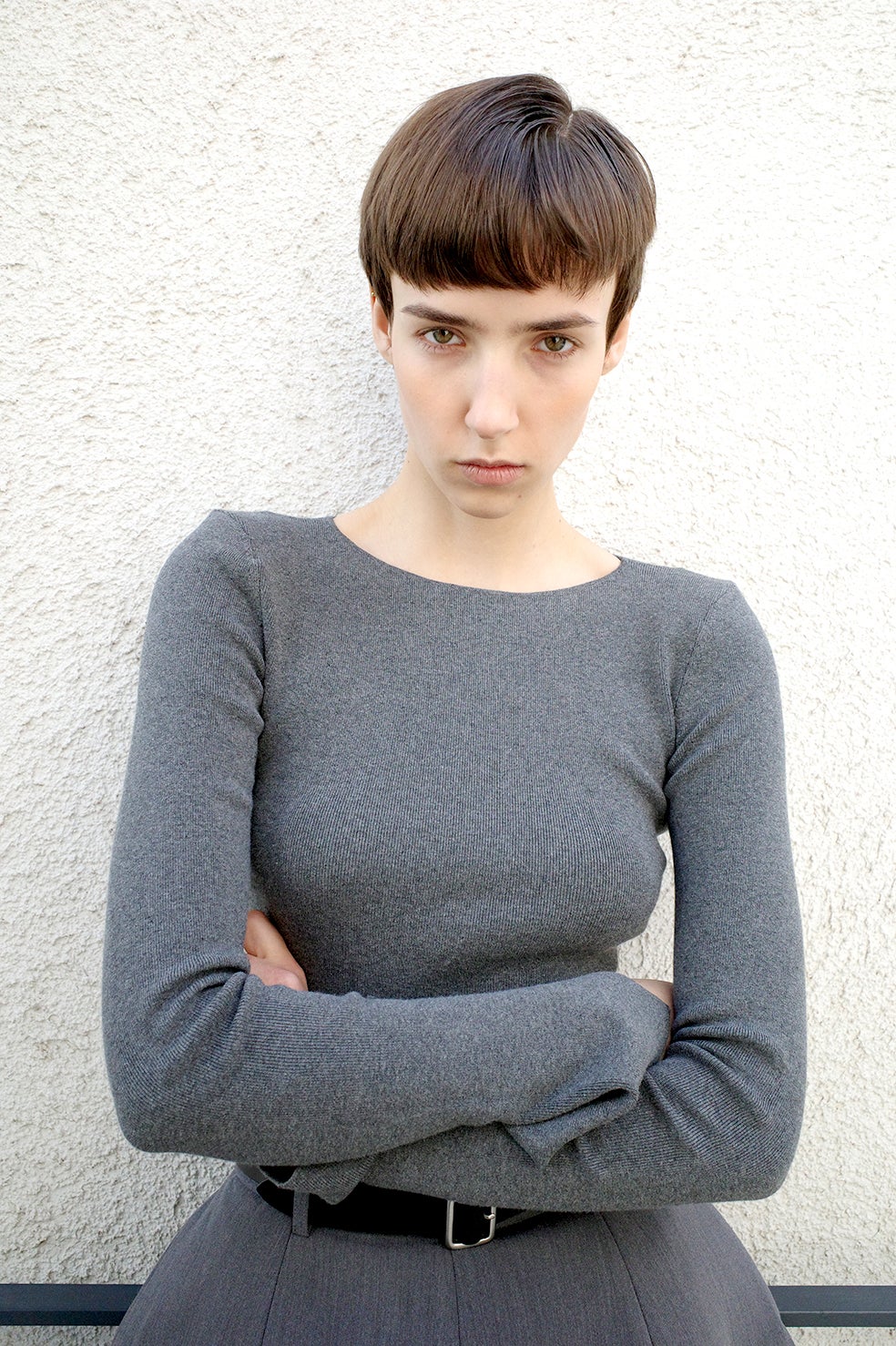 肌触りの良いコットン混の糸で仕上げた、コンパクトなニットトップス。