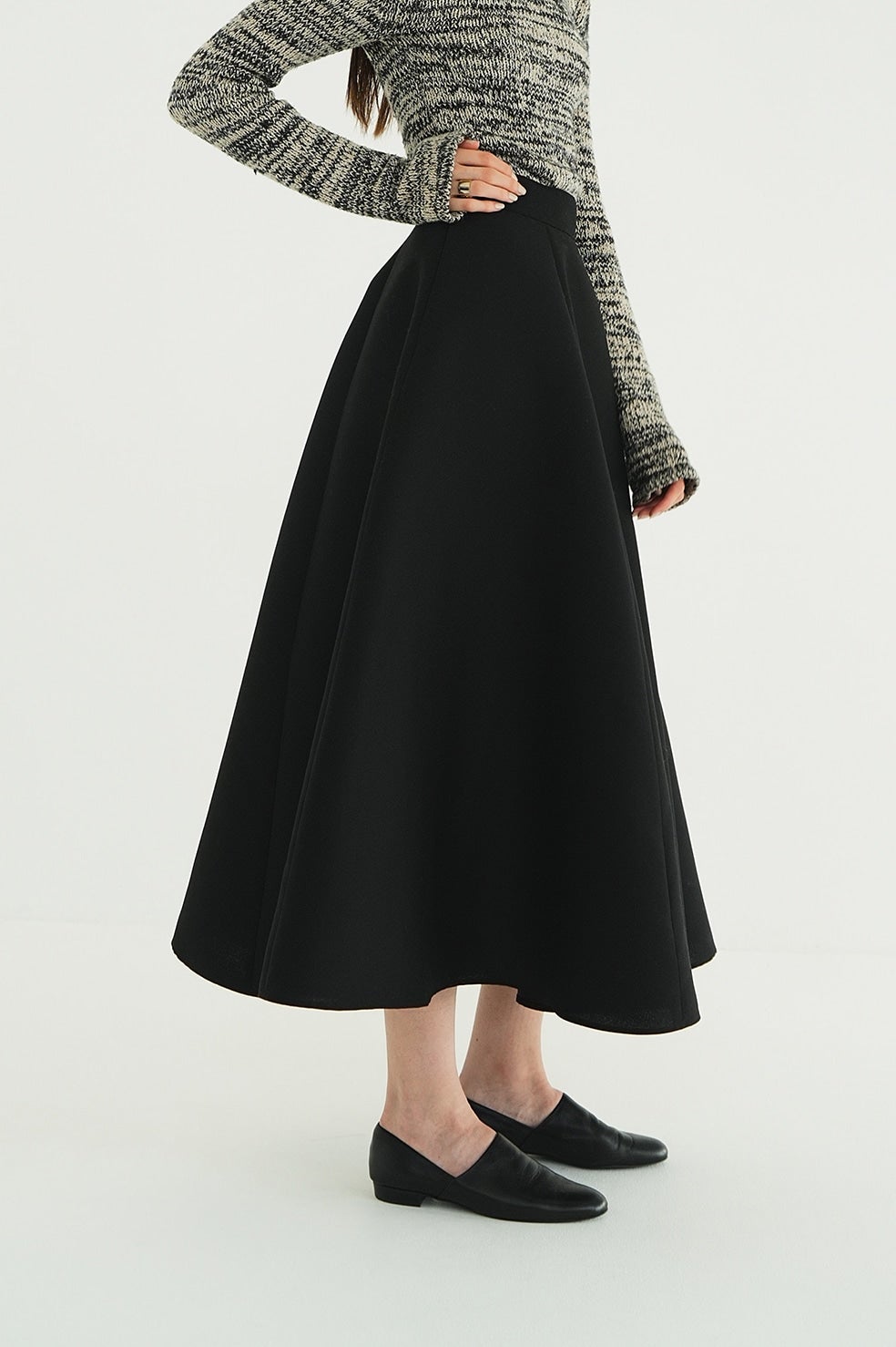 軽やかなボリュームが魅力の定番フレアスカート。