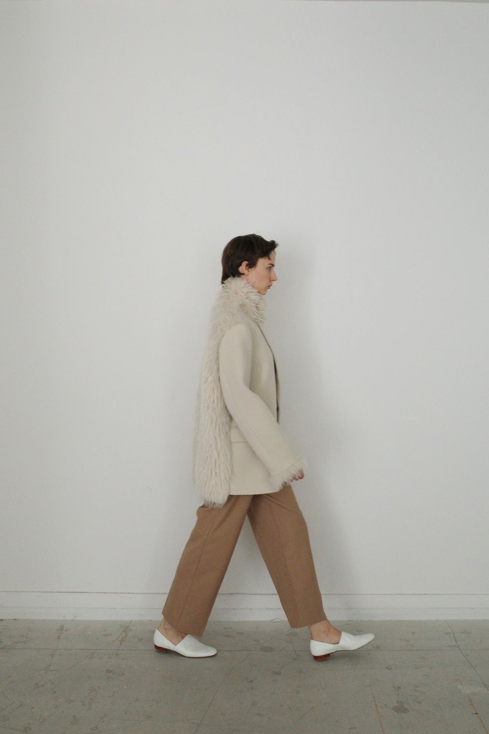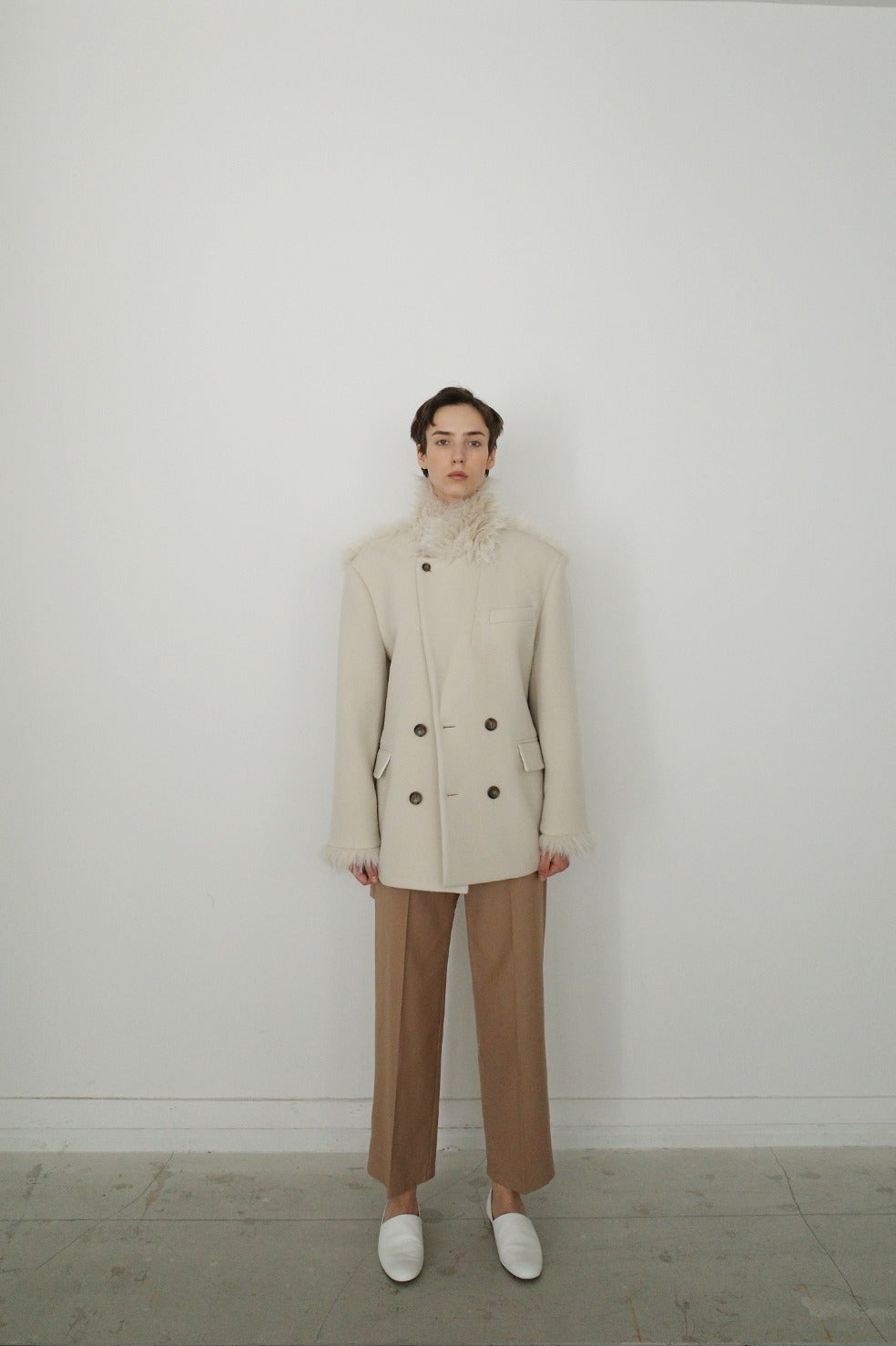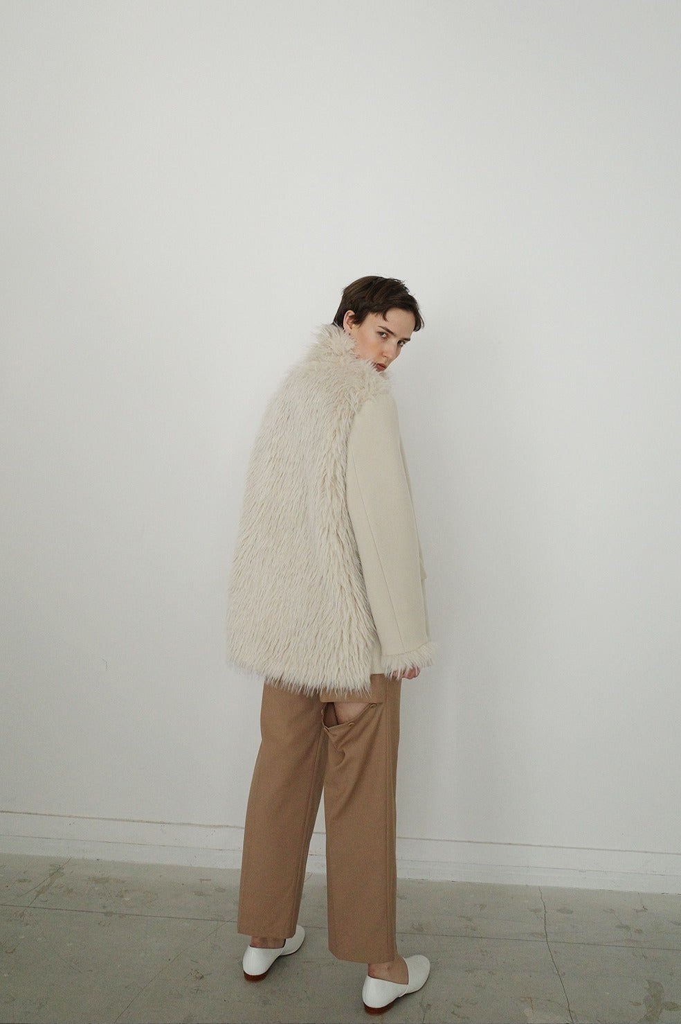 まっすぐに落ちるストレートシルエットが脚を長く美しく見せ、スタイリッシュな印象に。膝裏に施したスリットはボタン付きで開閉が可能で、シンプルな中にもひと癖あるデザインです。やや低めの位置でローウエストとしても着用でき、気分やスタイリングに合わせたバランスを楽しめます。