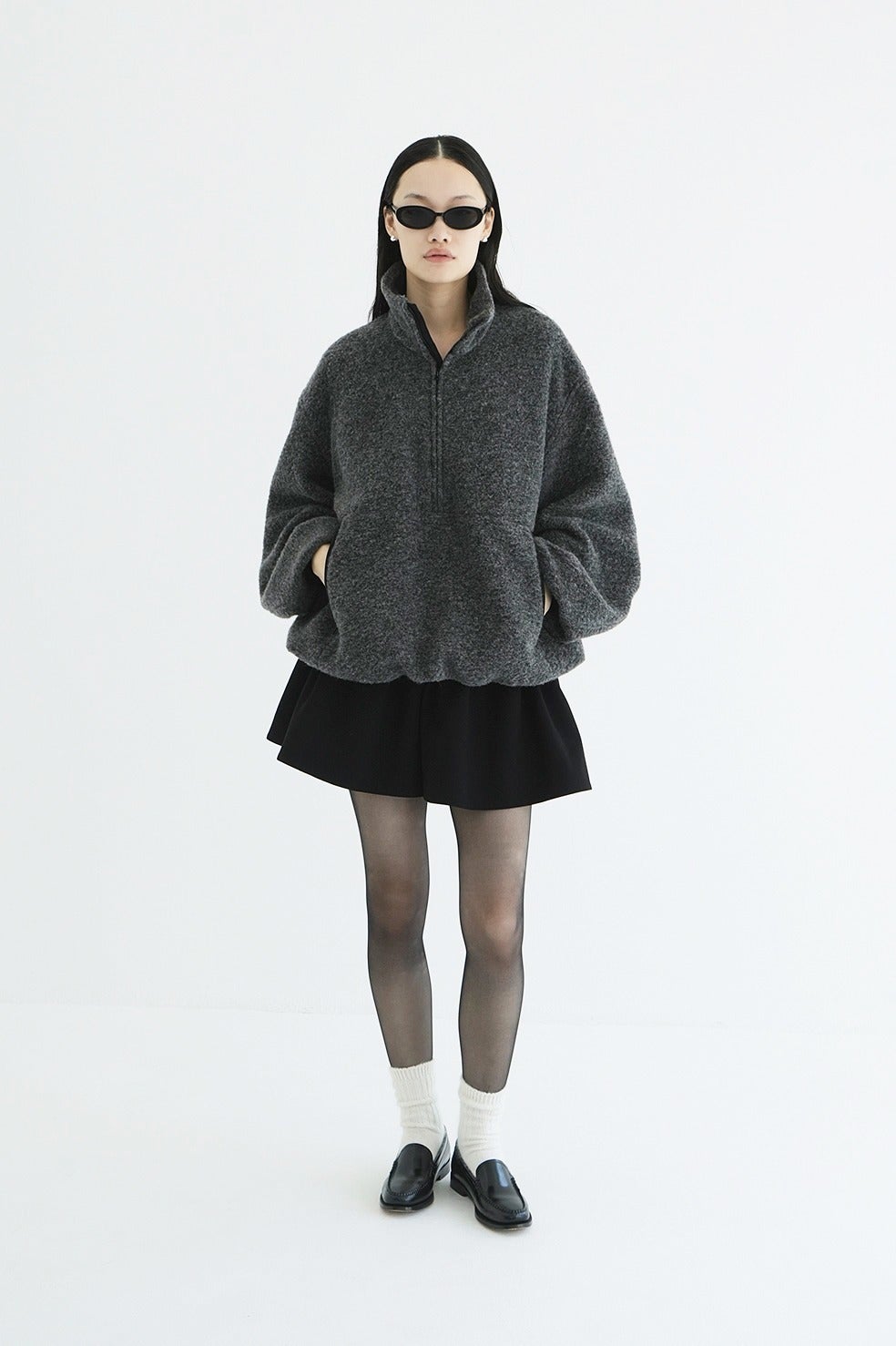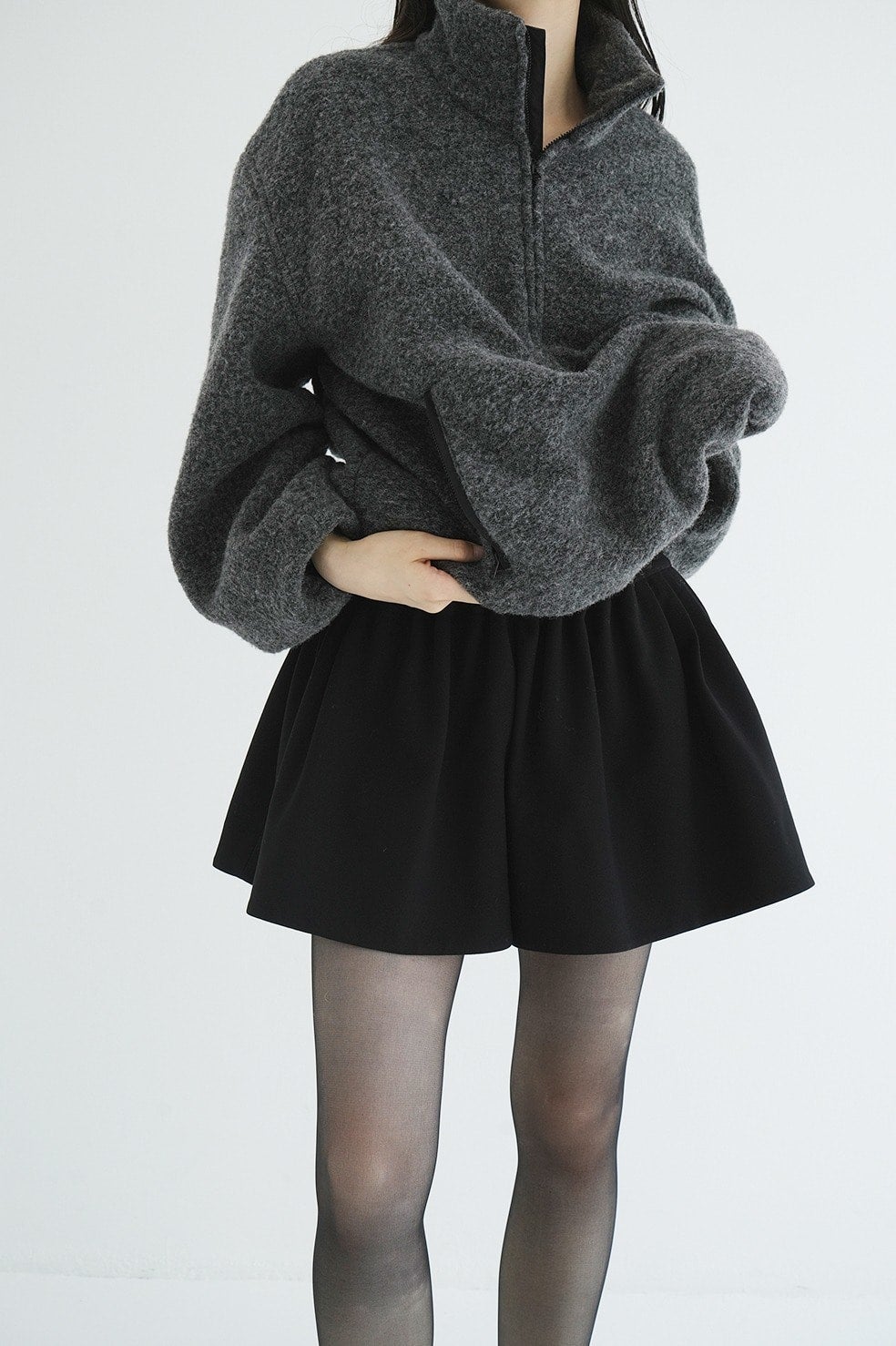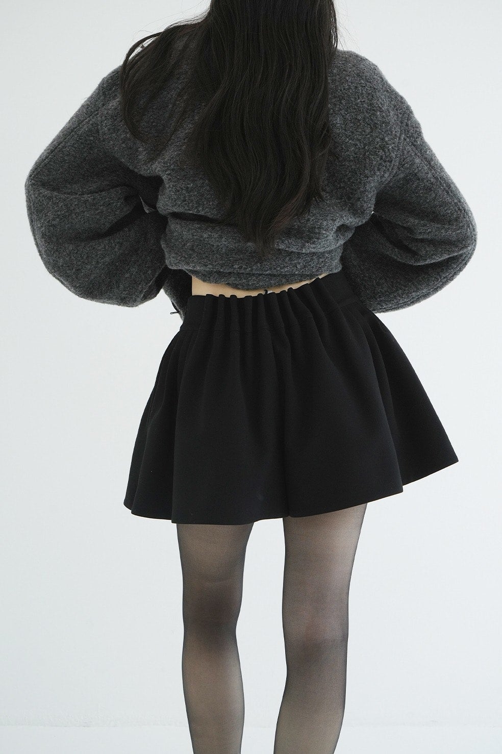 適度なハリと表情感を併せ持つウール混紡素材で仕立てた、スカートのようなたっぷりとしたフレアラインが特徴のショートパンツ。