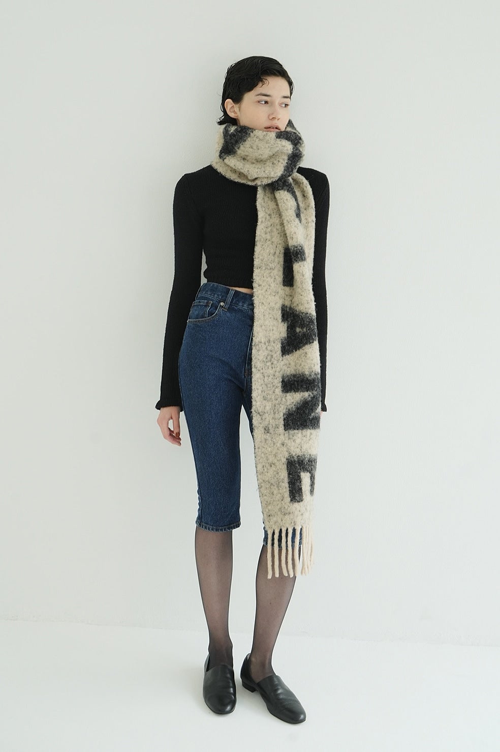 オーバーサイズのトップスや甘めのブラウスを合わせることで、モードなスタイリングを楽しめます。
