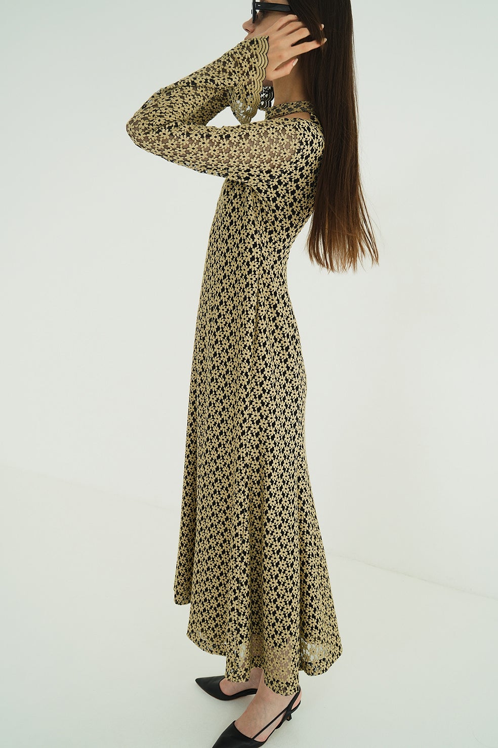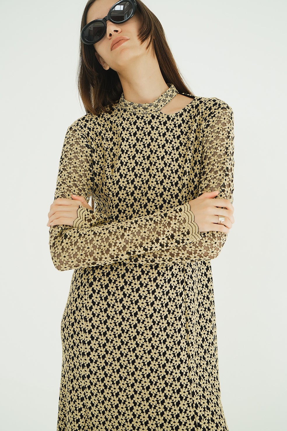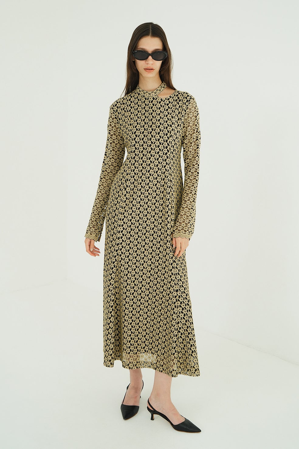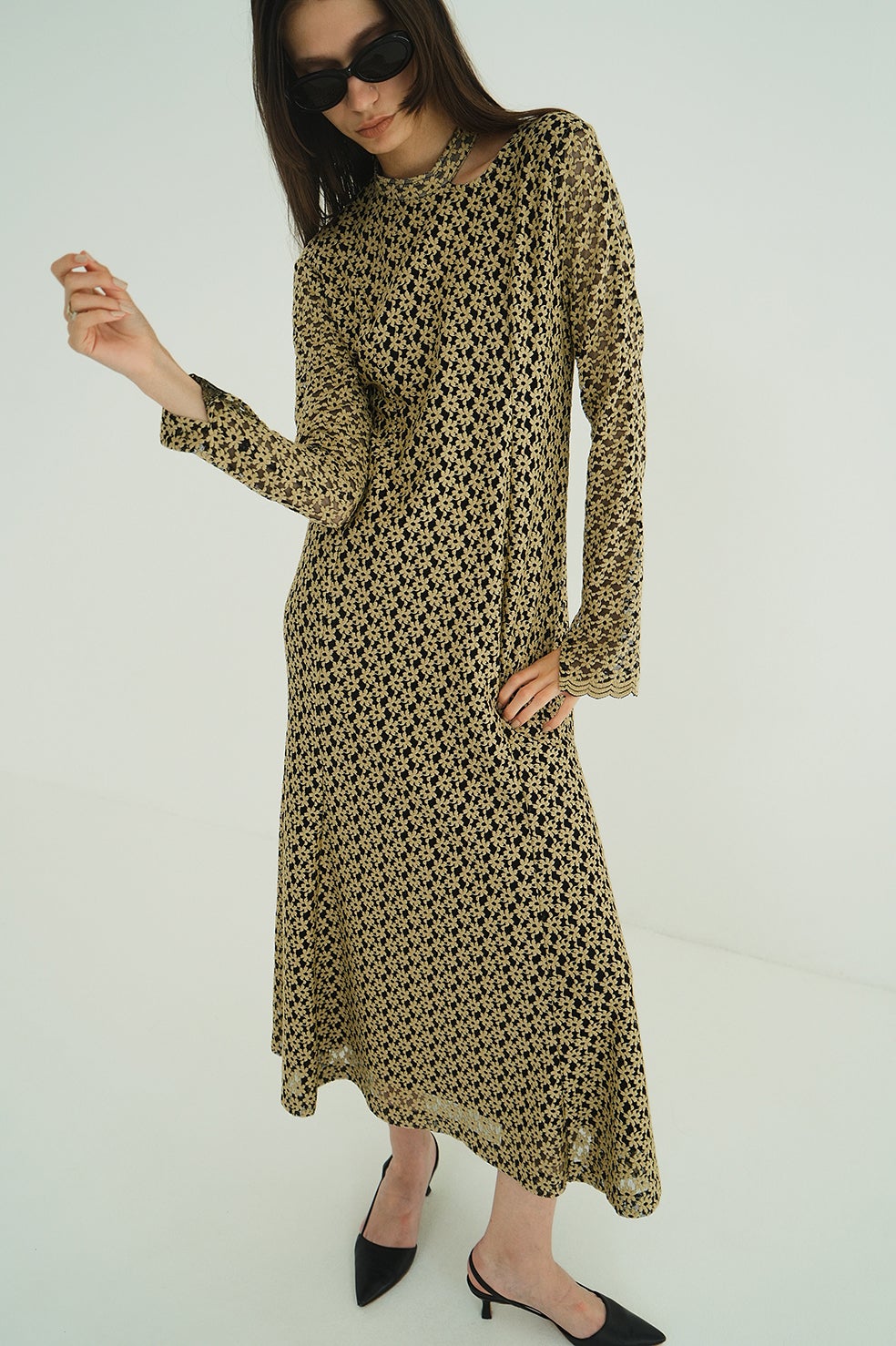 オリジナルで作成した立体感のある膨れフラワーレースを贅沢に使用した、ヴィンテージライクなワンピース。