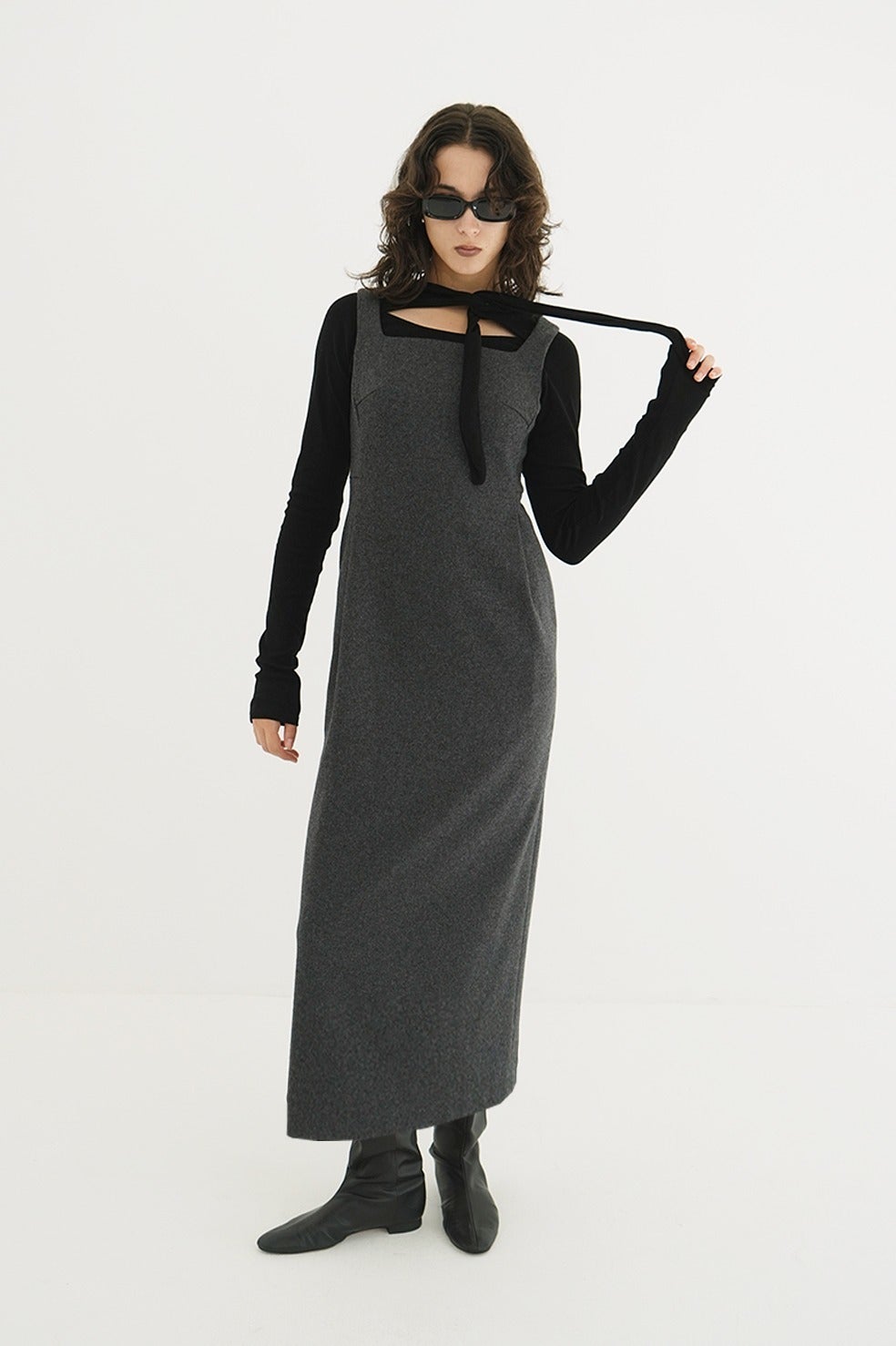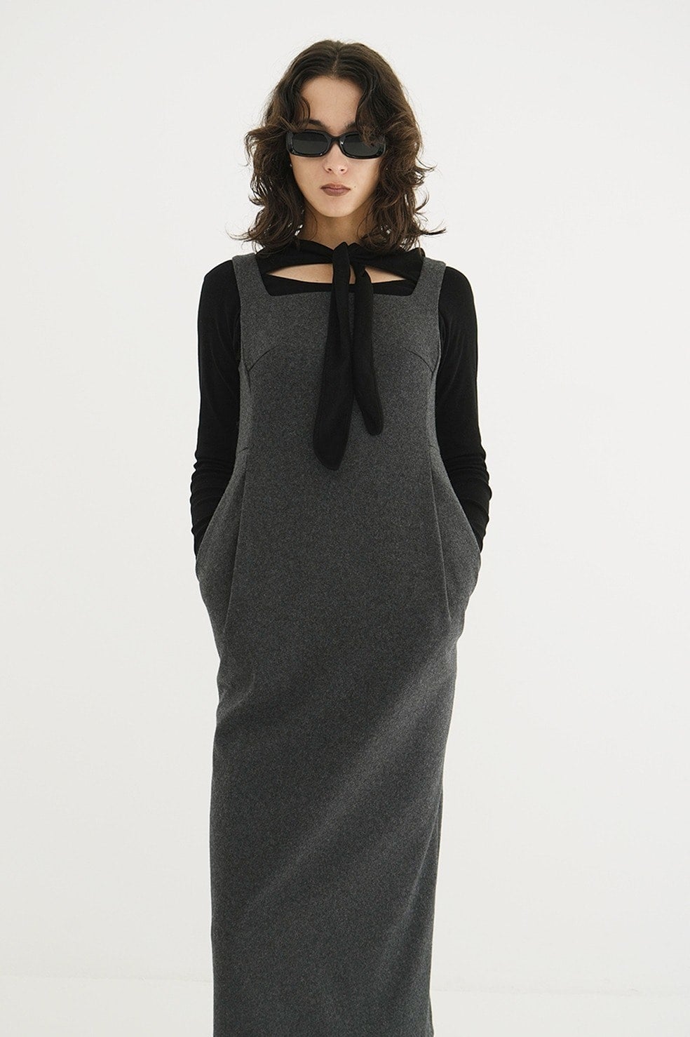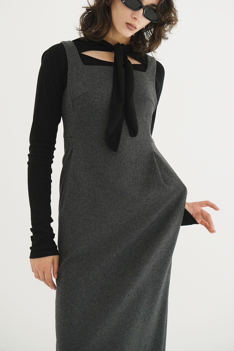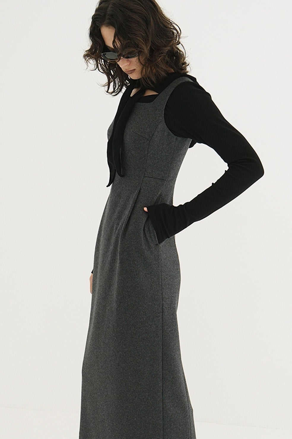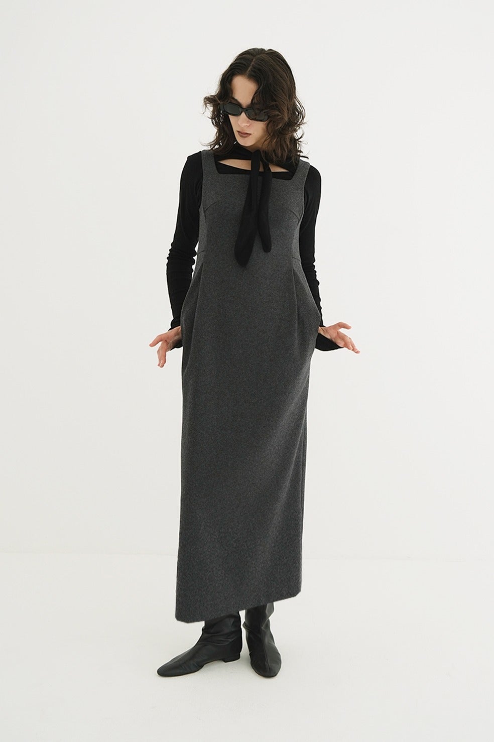 美しいスクエアラインと高めのウエストパネルで、スタイルアップを叶えるワンピース。