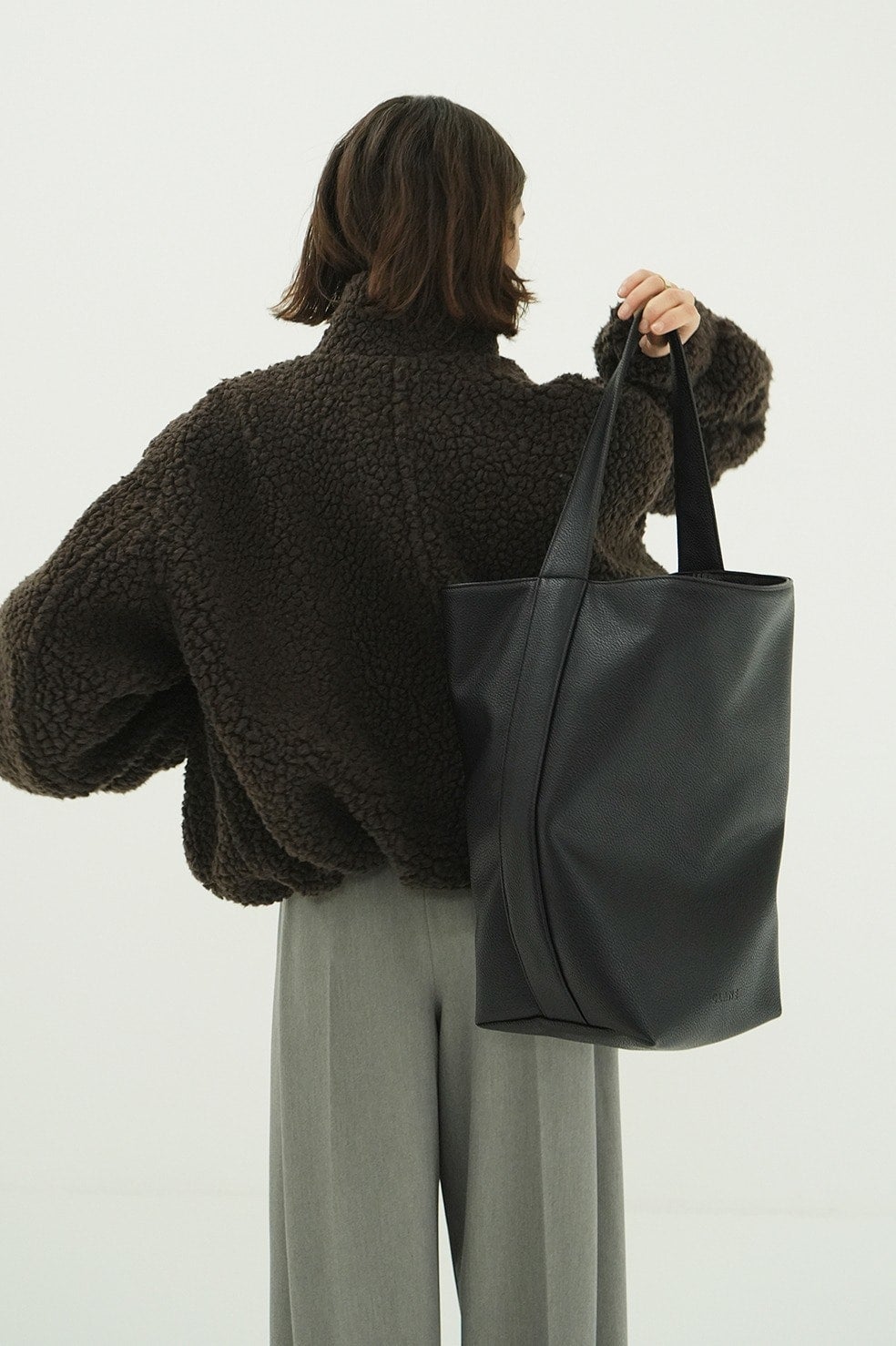 シボ感のある上品なフェイクレザーを使用した、存在感のある大サイズのトートバッグ。