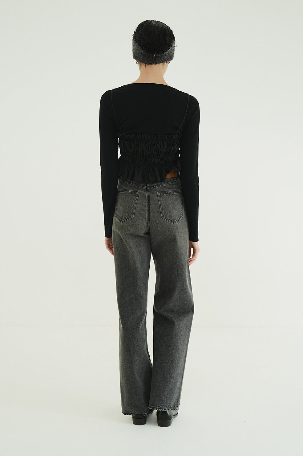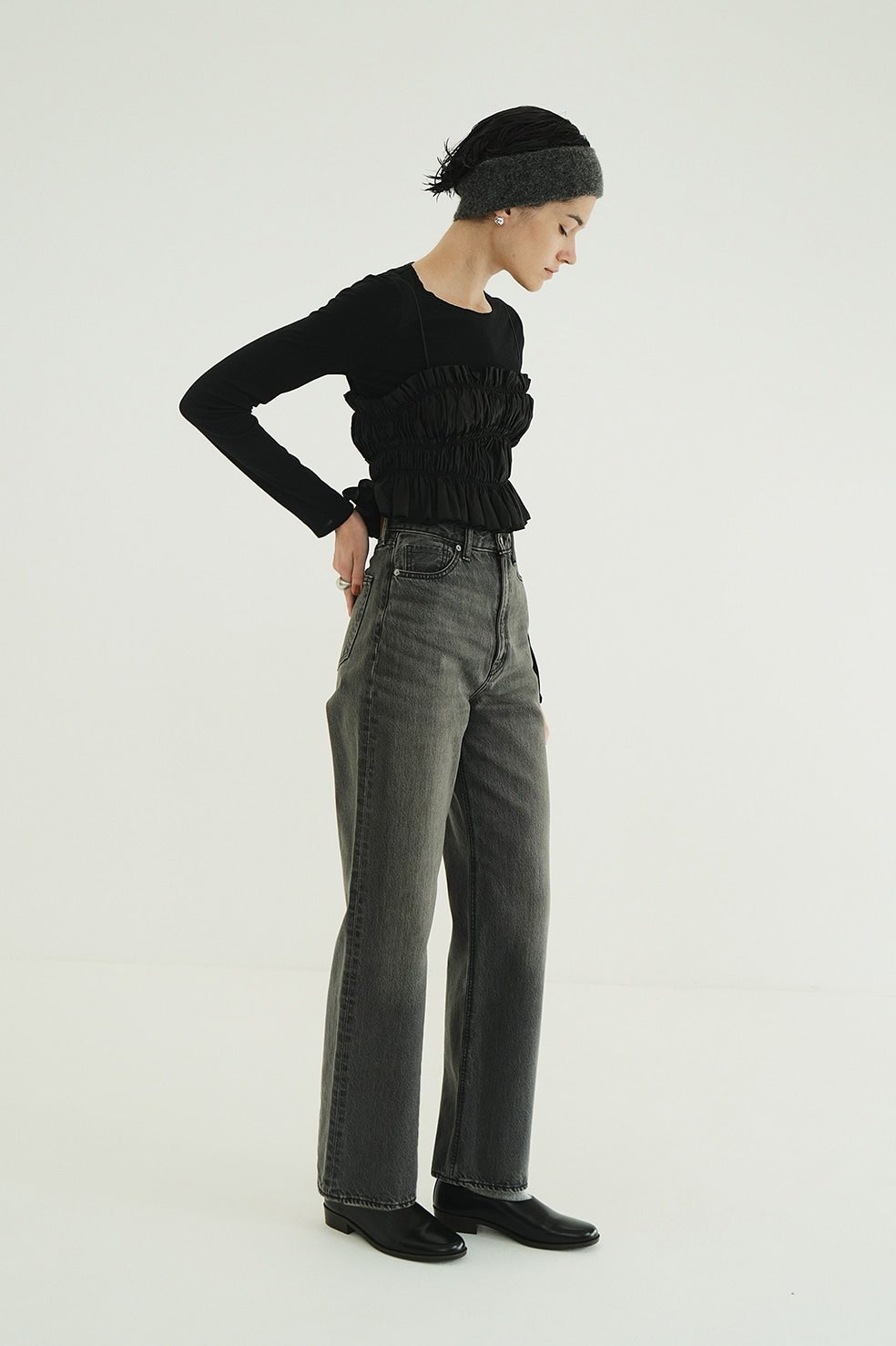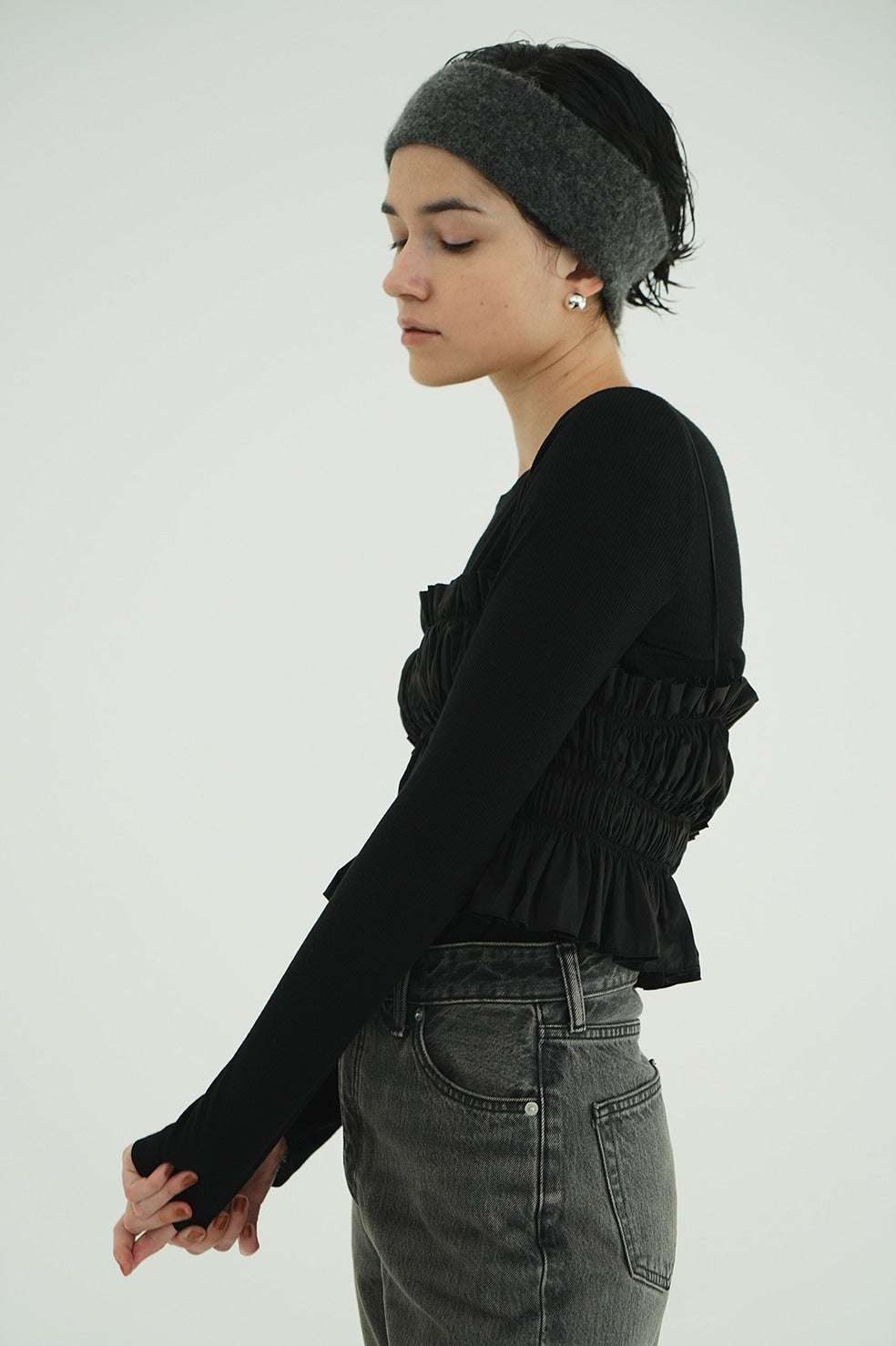 ビスチェはギャザーを贅沢に寄せた、コンパクトでトレンド感のあるデザイン。レイヤードすることで一気に今年らしいスタイリングが完成します。